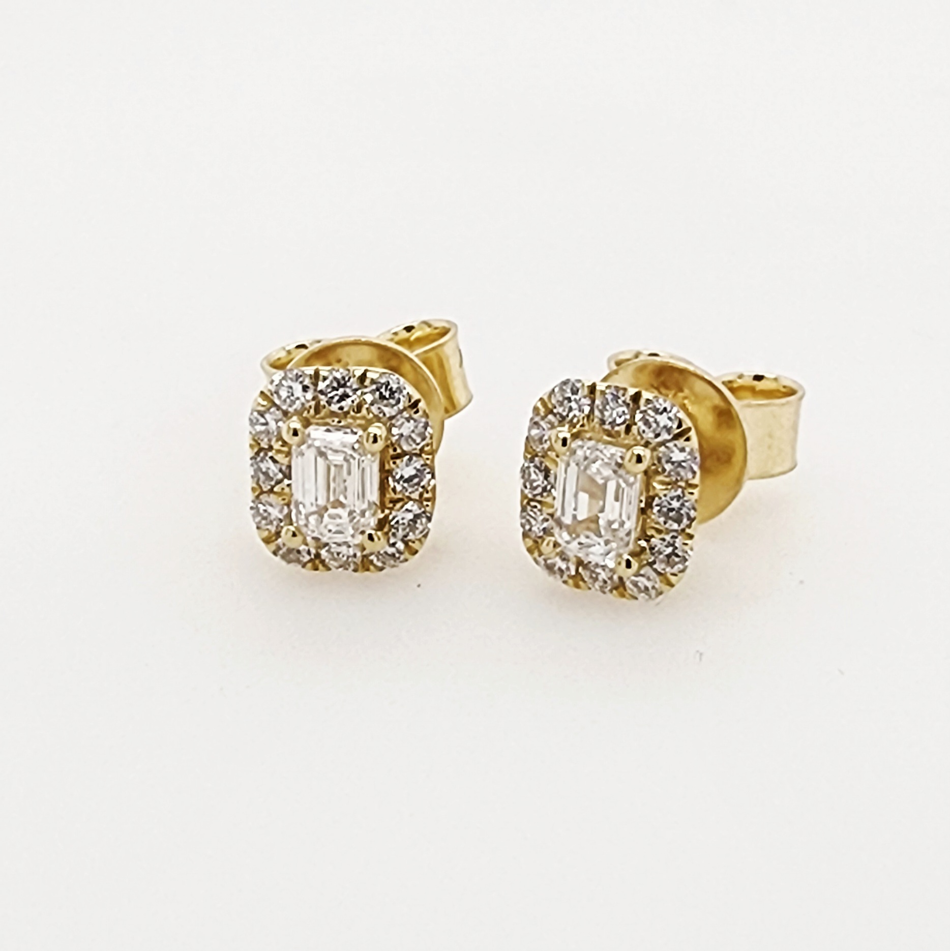 Each stud is designed with a 2.50mm x 3.50mm baguette-cut centre diamond, beautifully framed by 12 round brilliant-cut diamonds, creating a radiant cluster effect. All diamonds are securely set in classic four-claw settings, ensuring durability and lasting shine.