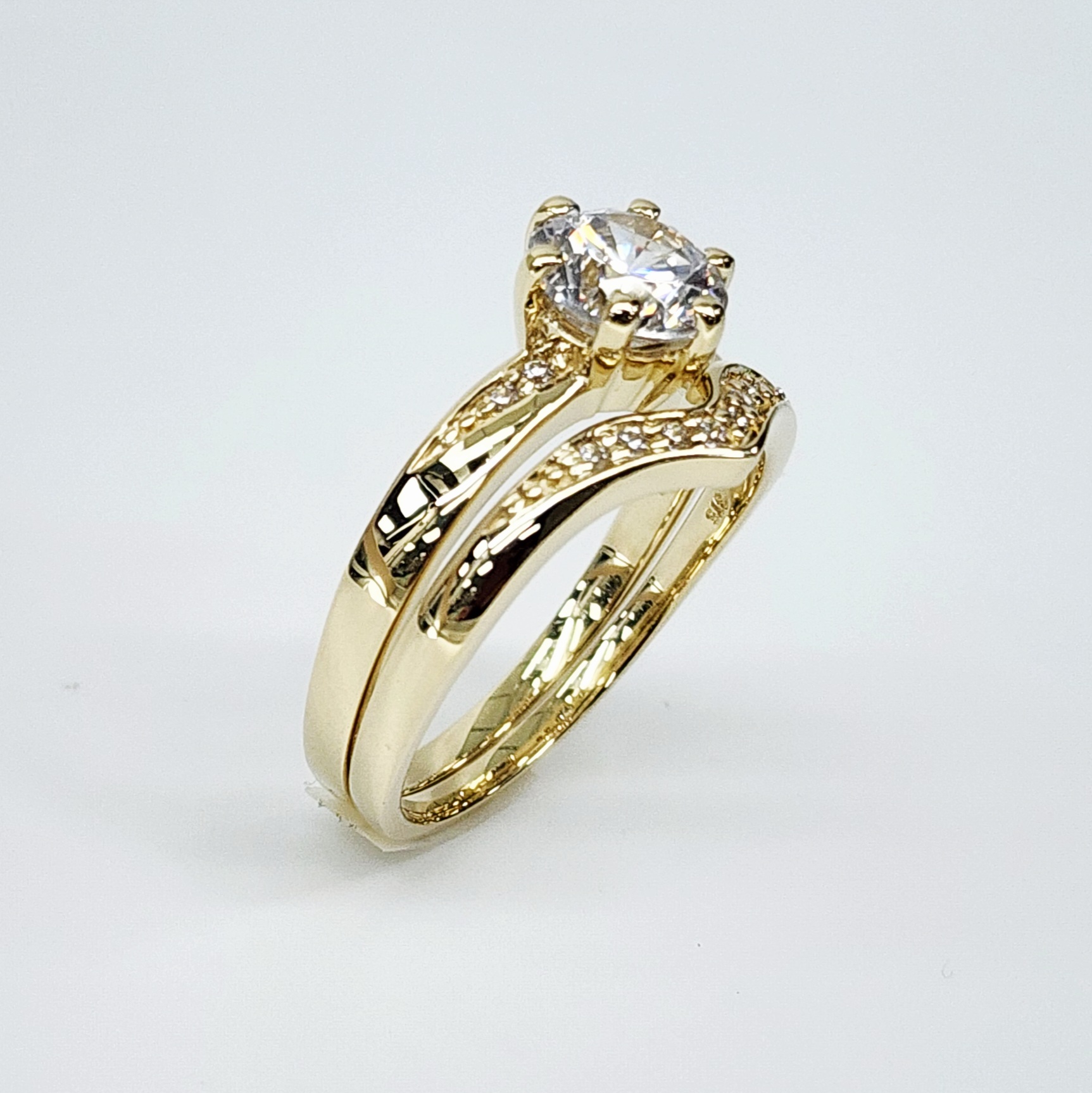 9ct Yellow Gold Ladies 2 Piece Cubic Ziconia Bridal Set Ring – SOR1011AB