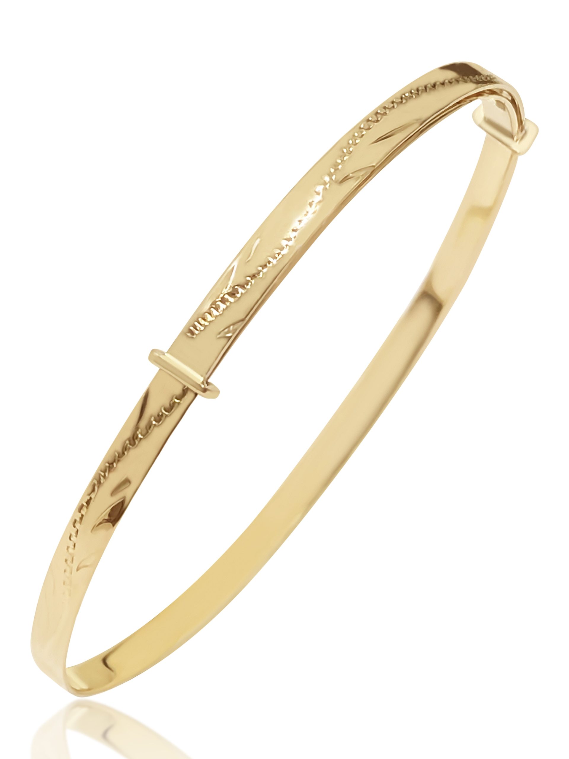 9ct Yellow Gold Large Engraved Expanding Bangle