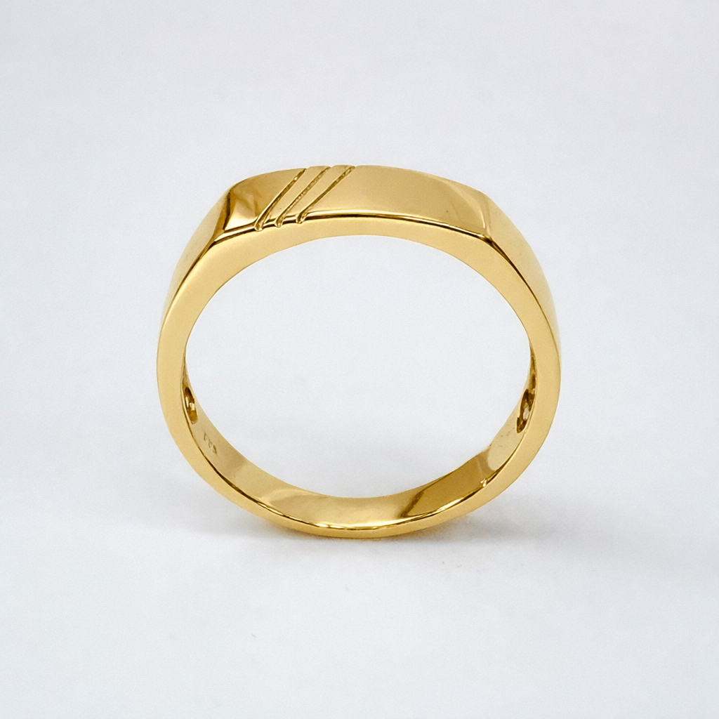 9ct Yellow Gold Men’s Signet Ring – 6.5mm x 16mm Rectangular Face, Engraved Lines – 9YGD8182