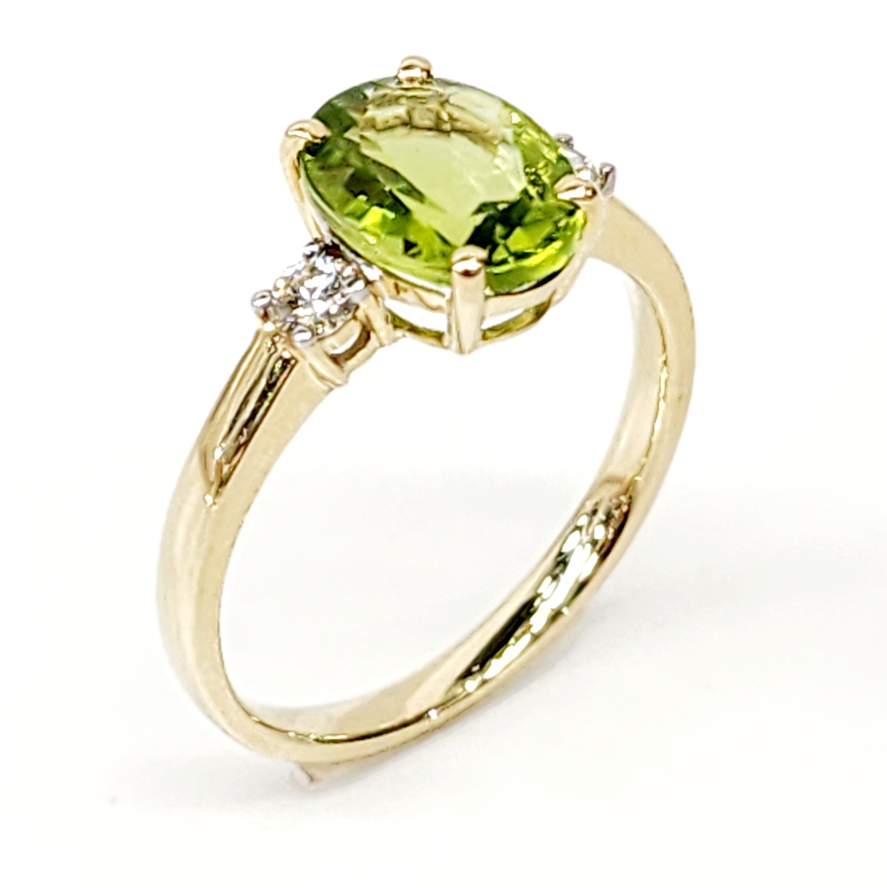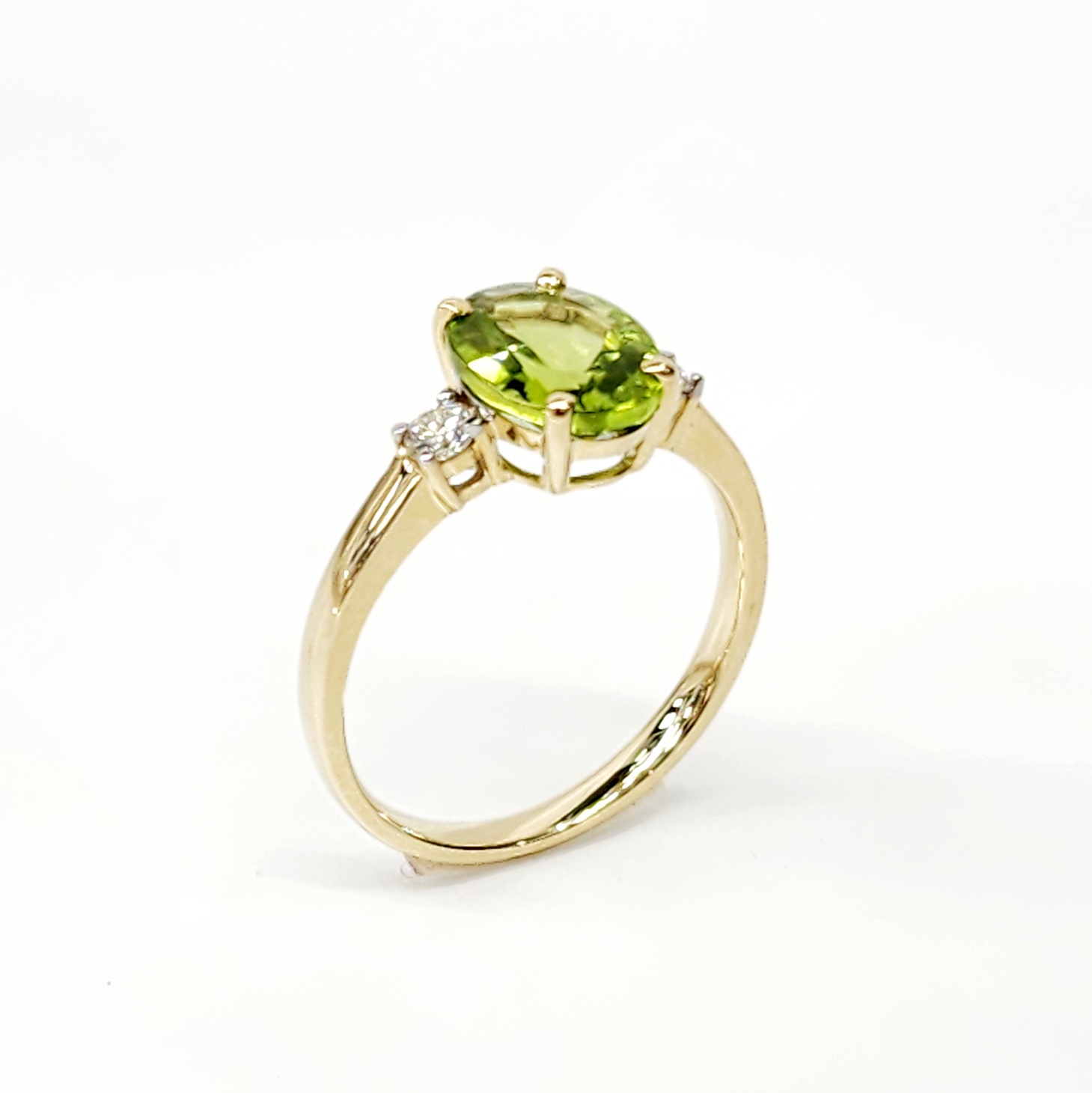 9ct Yellow Gold Oval Peridot and Diamond Ring