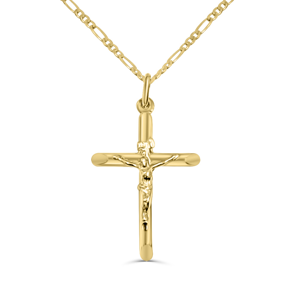 9ct Yellow Gold Polished Crucific Cross Pendant 21mm Wide with Chiseled Edge