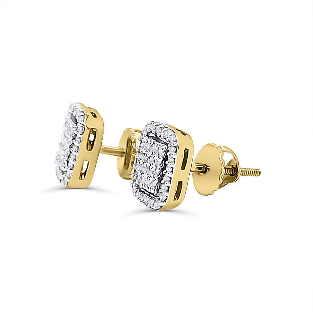 10ct Yellow Gold 1/4ct Radiant Cluster Setting Halo Diamond Stud Earrings
