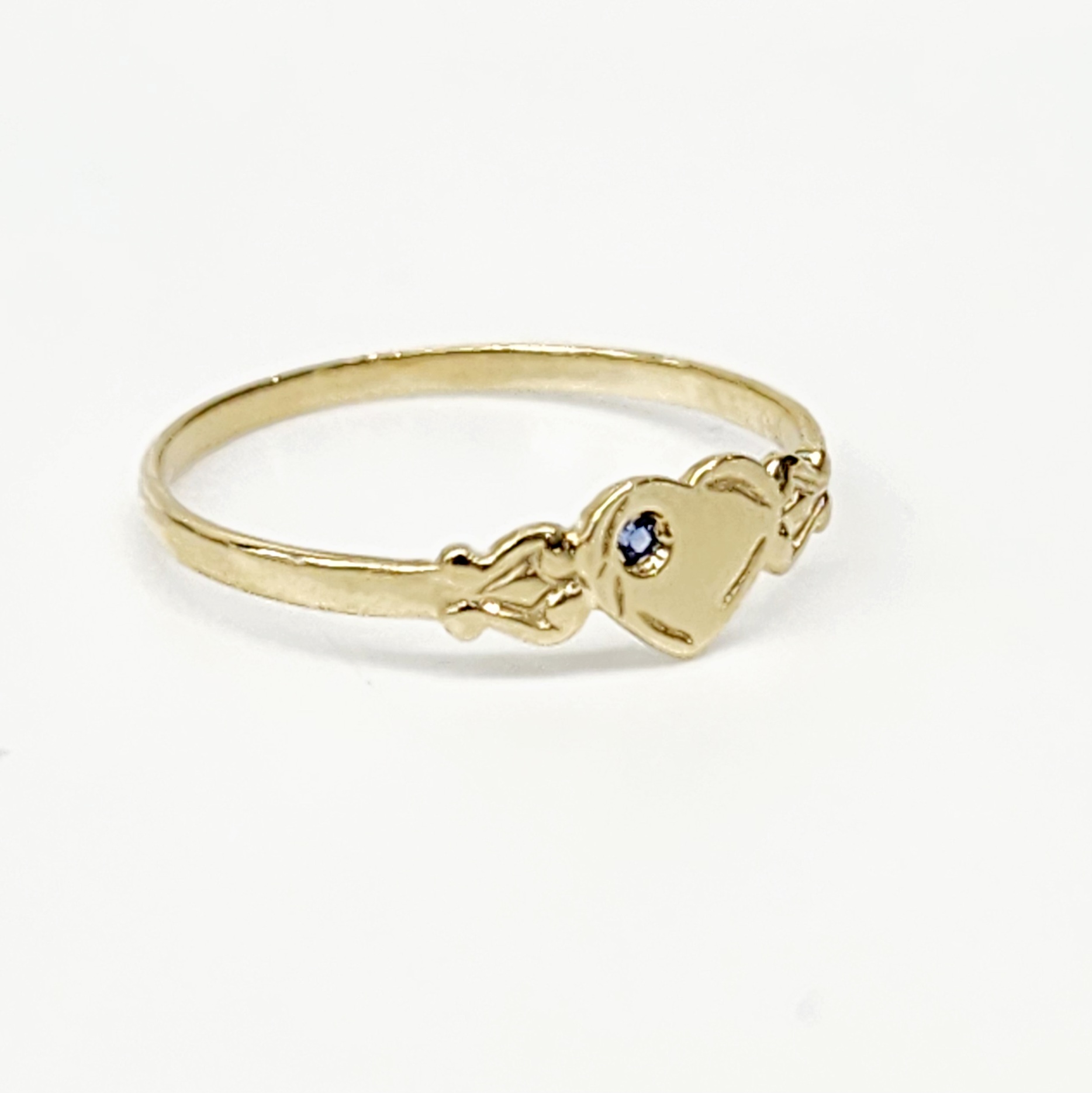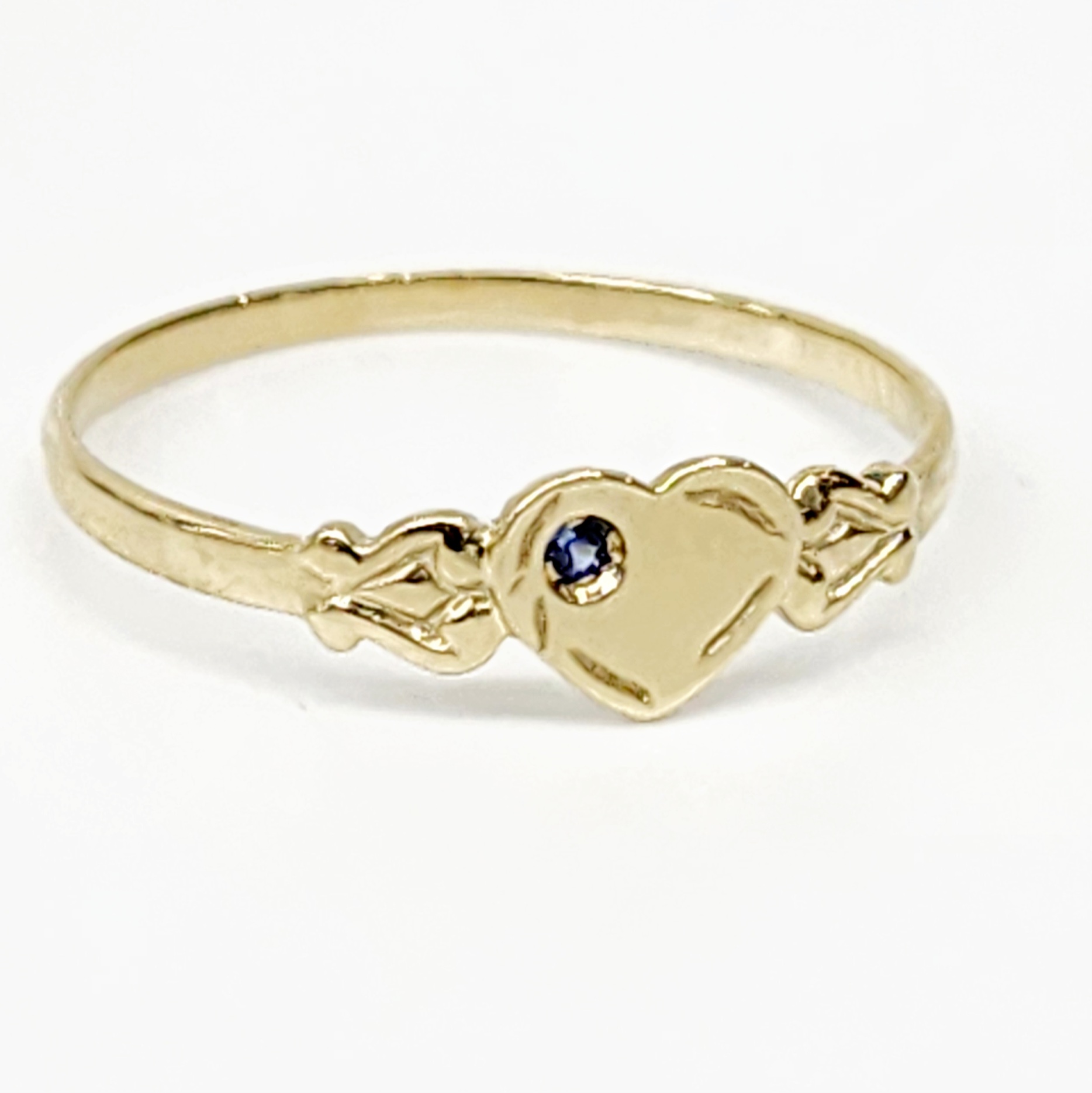 9ct Yellow Gold Single Heart Blue Sapphire Signet Ring