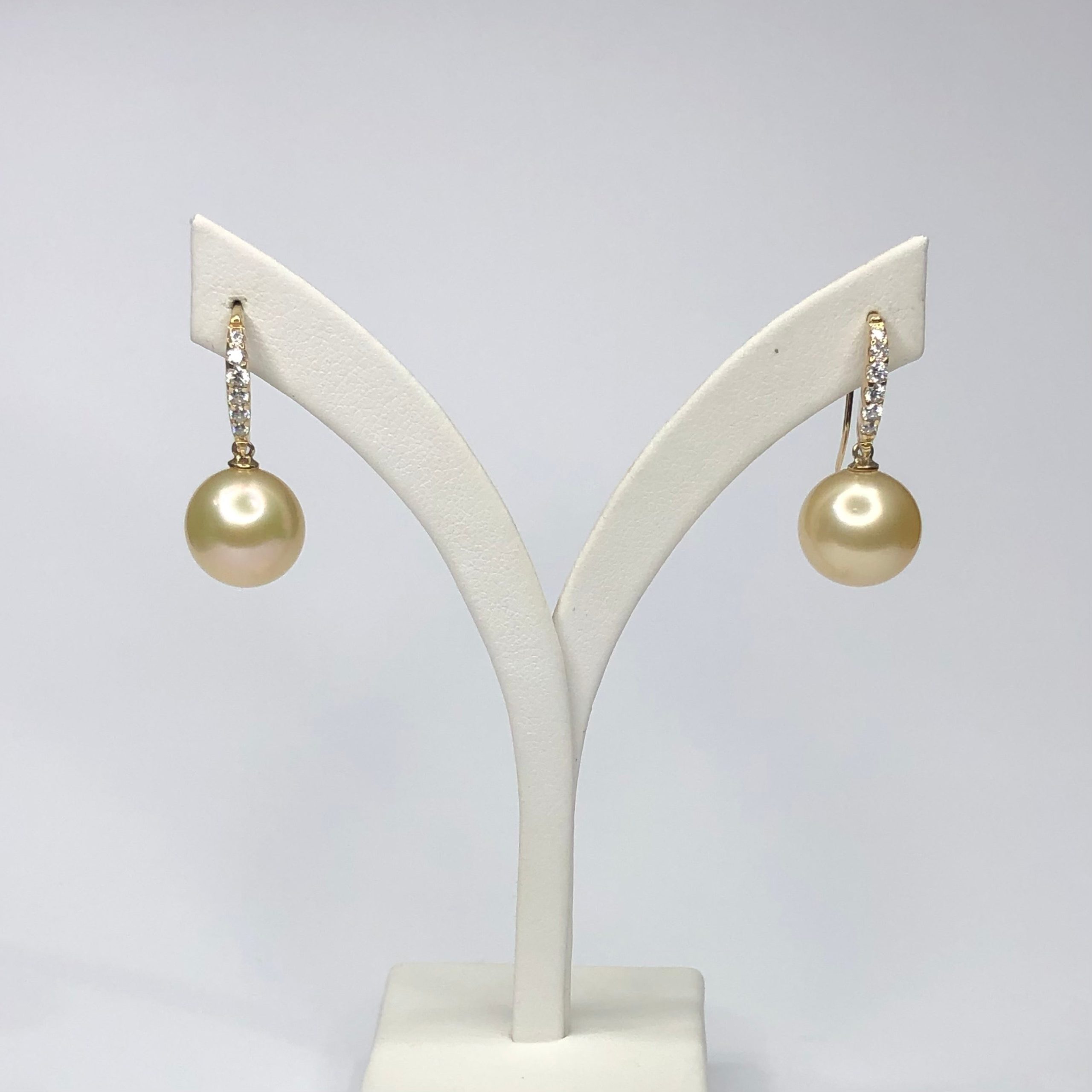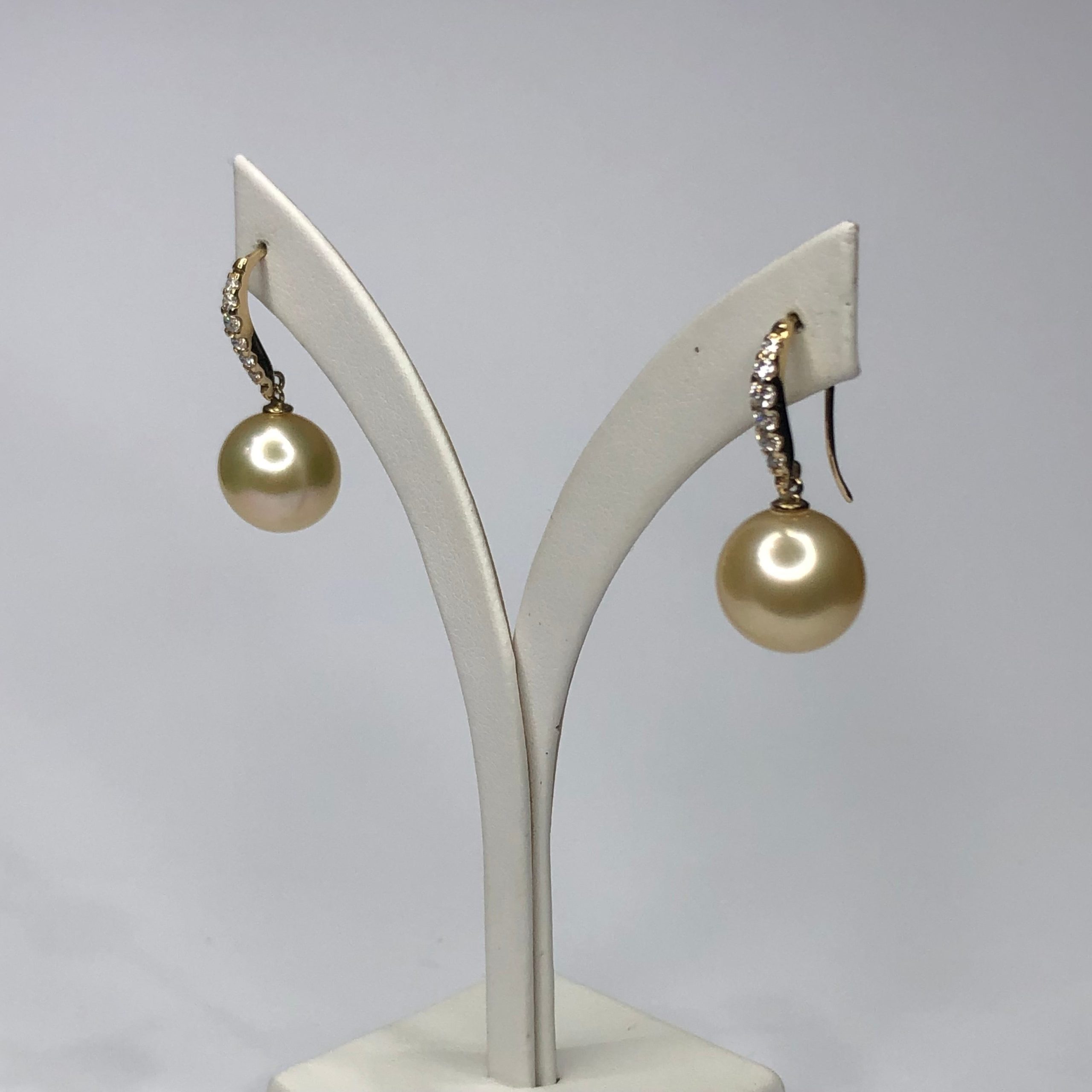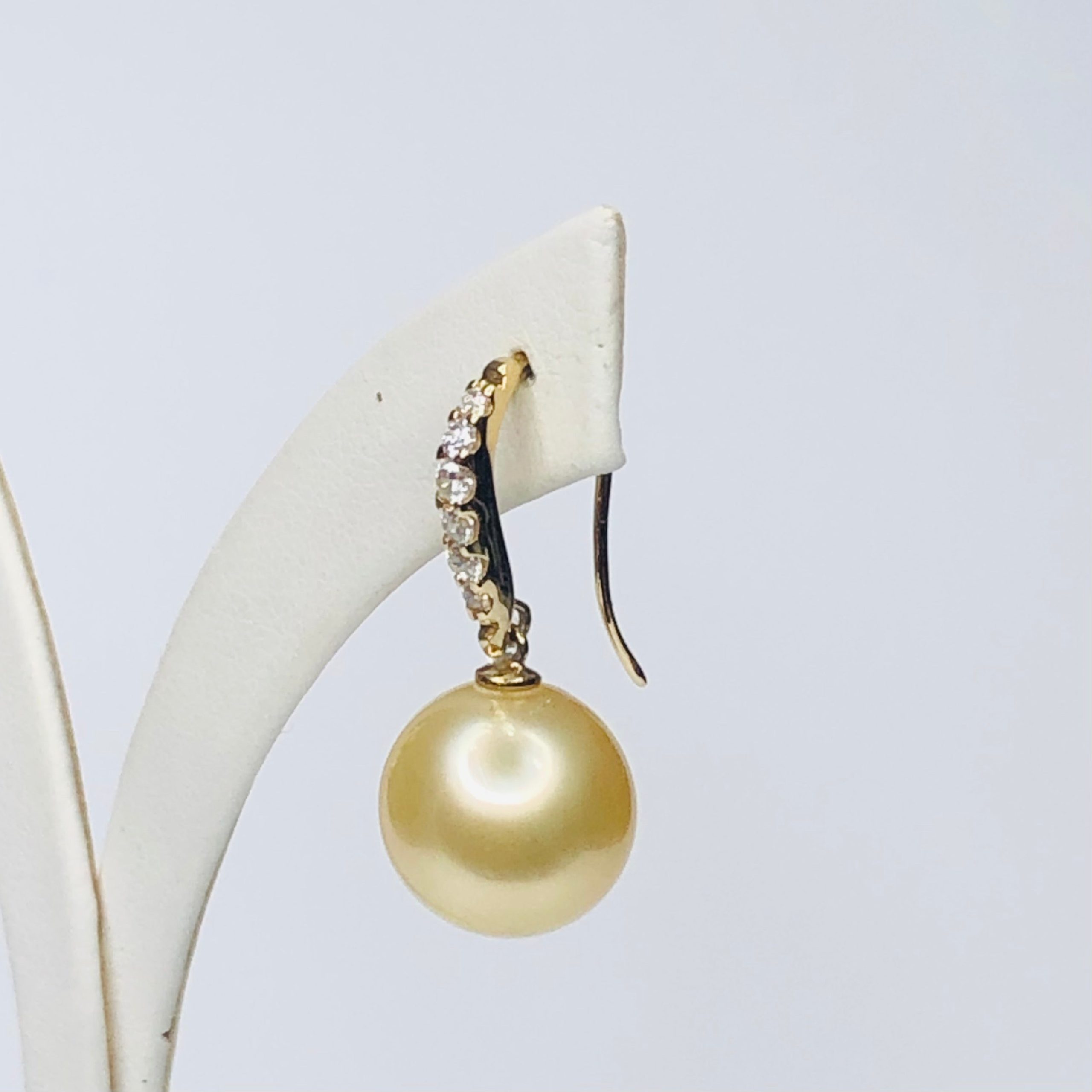 9ct Yellow Gold South Sea Golden Pearl 11.5-12.0mm Hook Earrings With Cubic Zirconia Setting