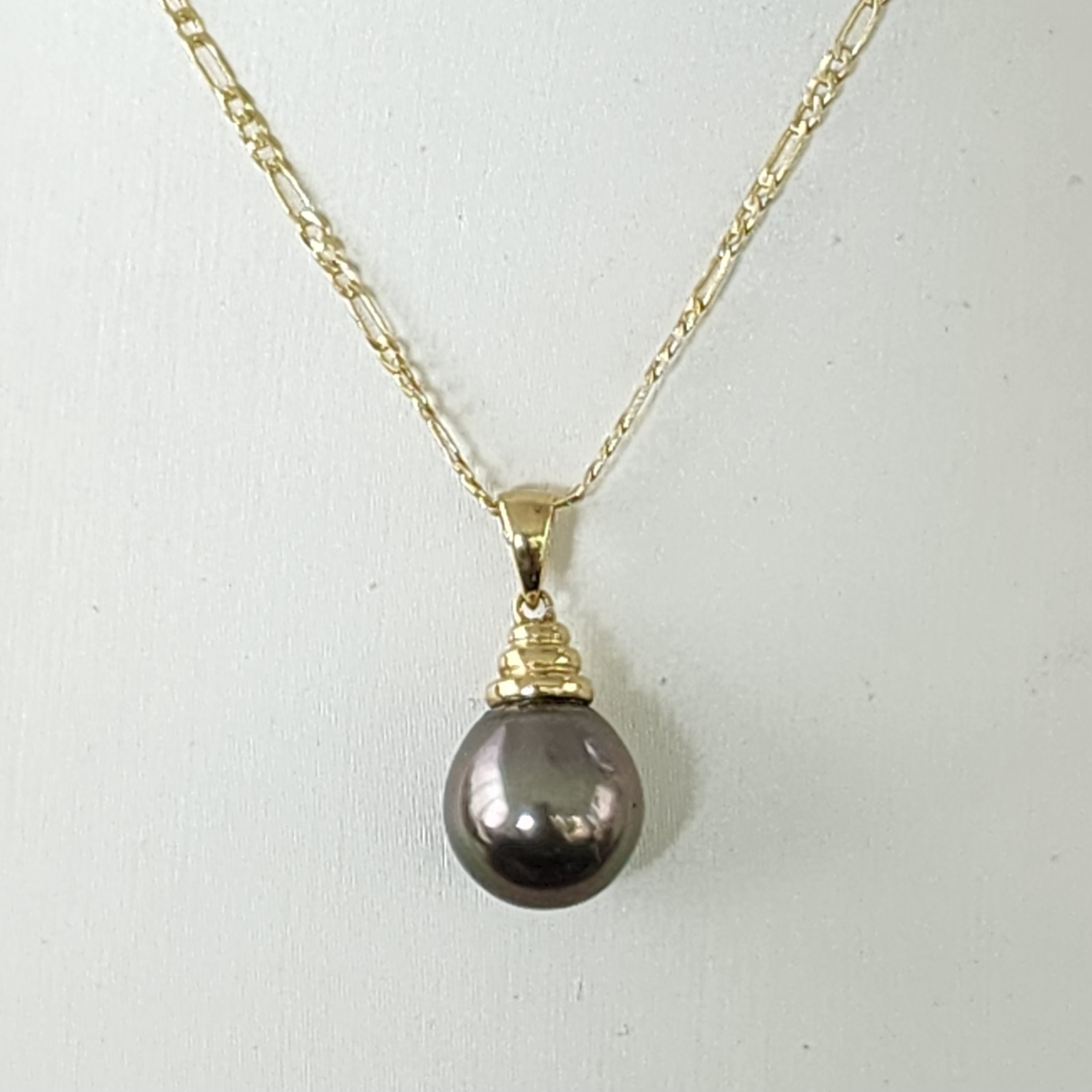 9ct Yellow Gold Tahitian Teardrop Black Pearl Pendant 13-13.5mm Round