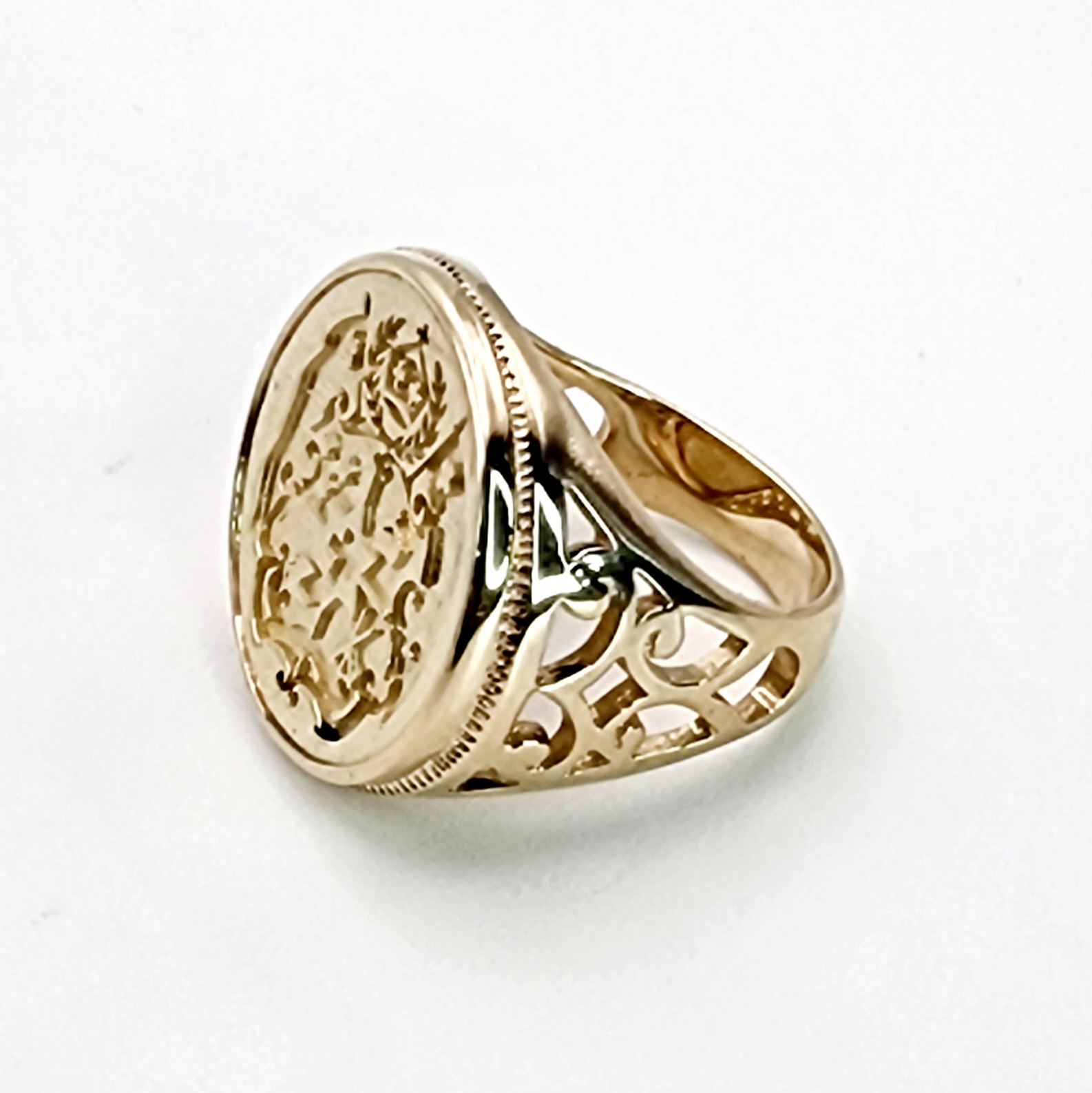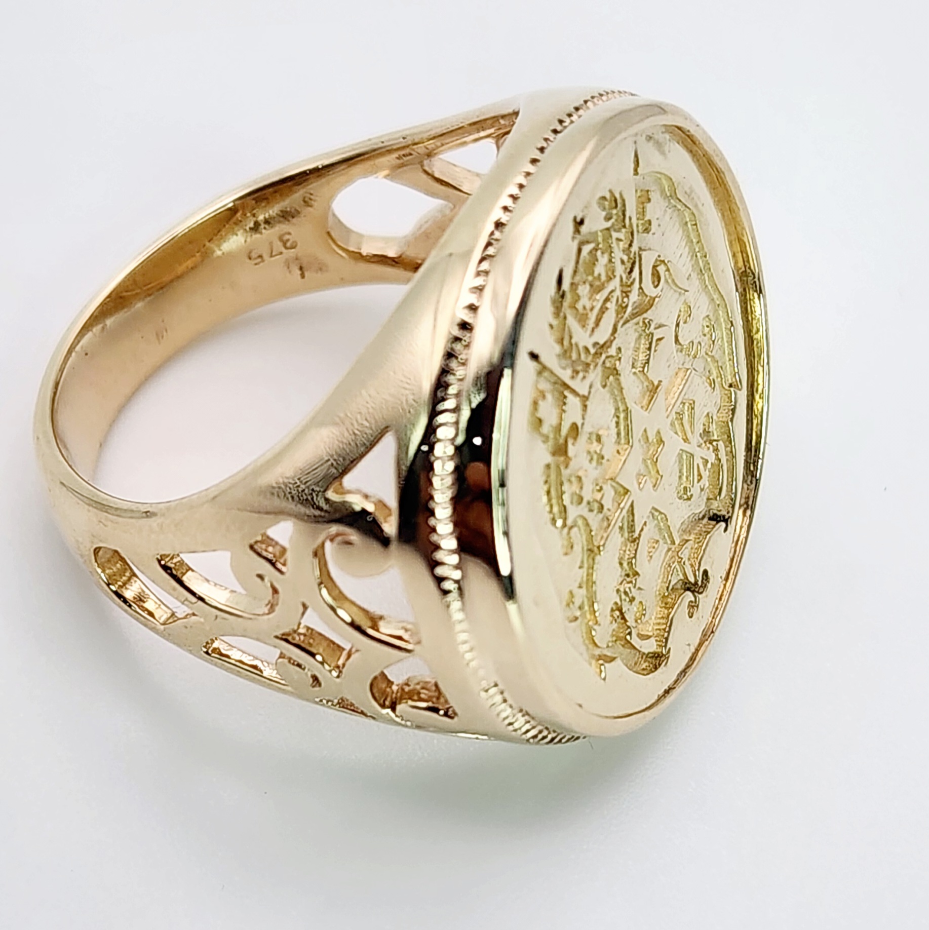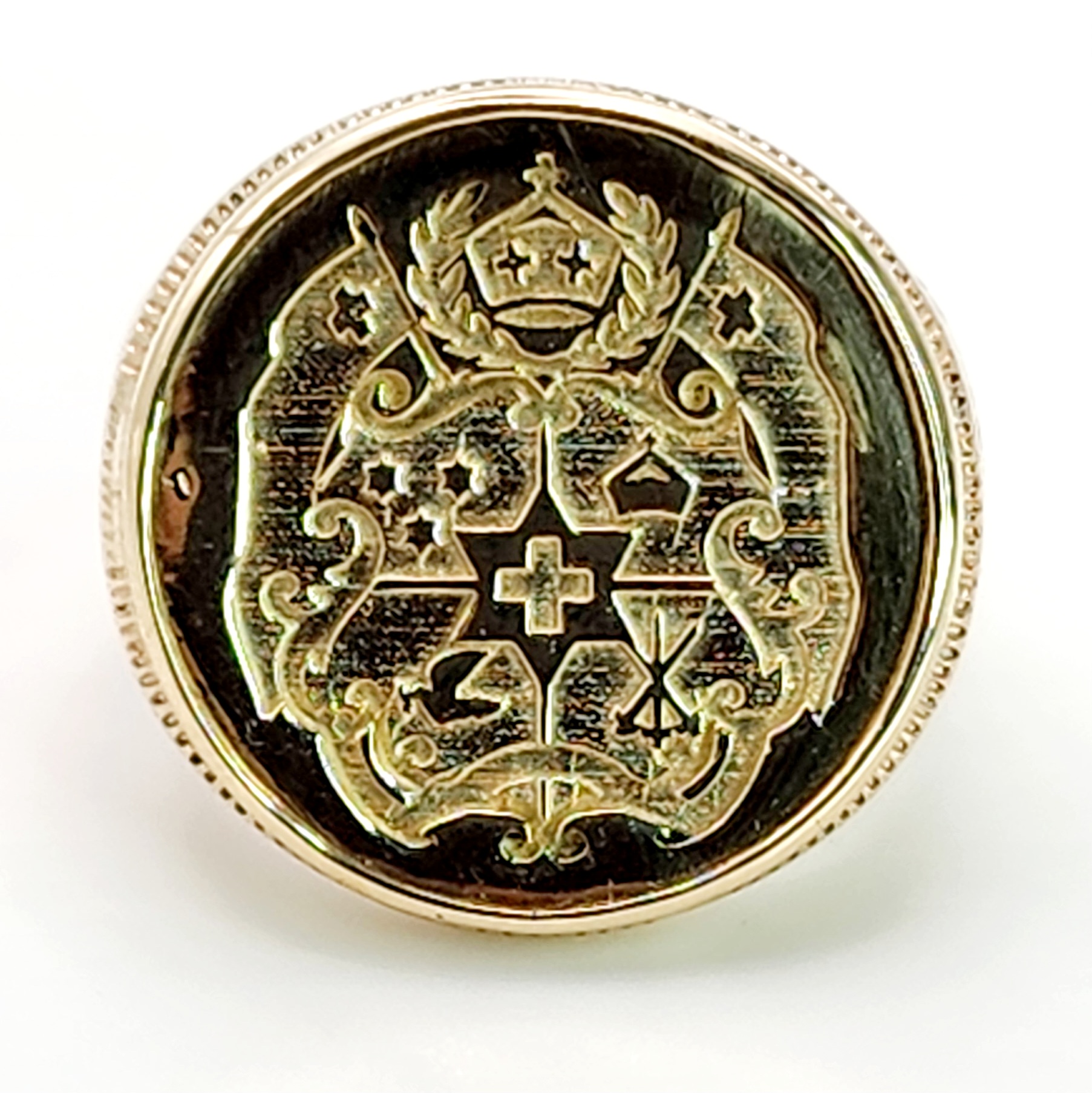 9ct Yellow Gold Tongan Sila Coin Ring with Filigree Ring Mount