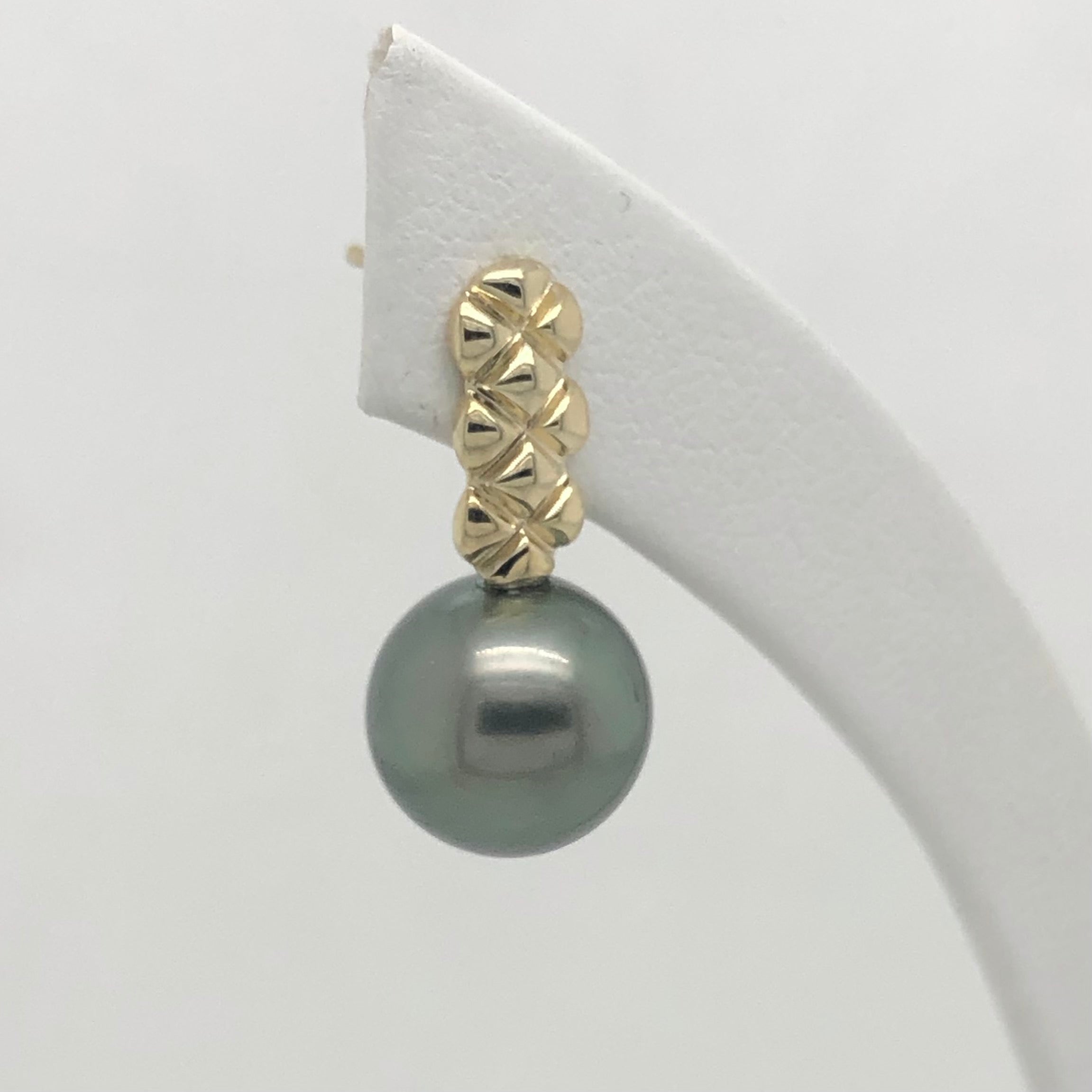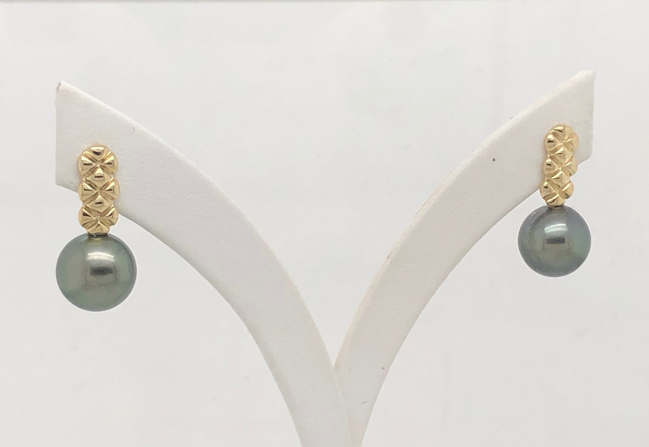 9ct Yellow Gold with Round Tahitian Black Pearl 9.0mm – 10.0mm Drop Stud Earrings