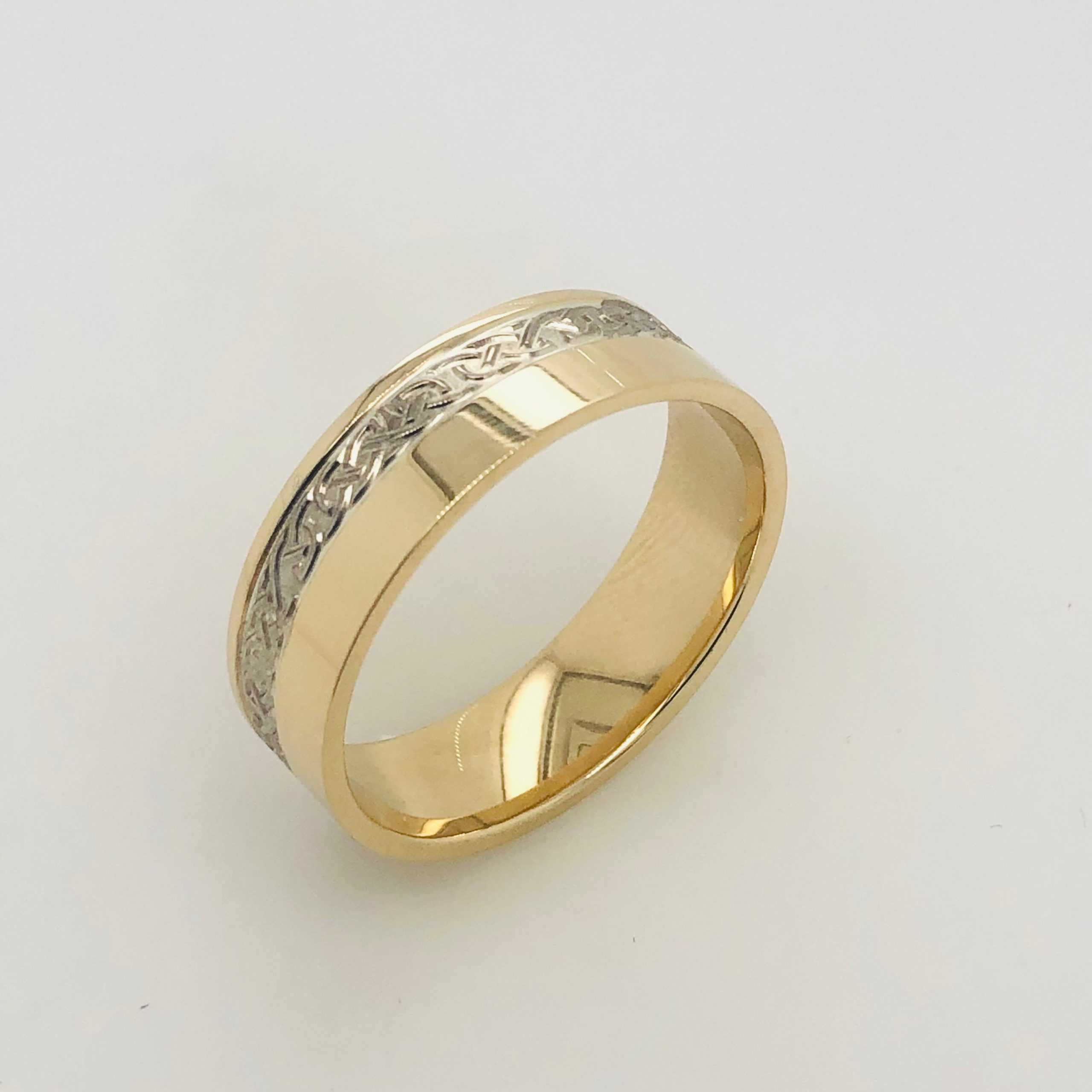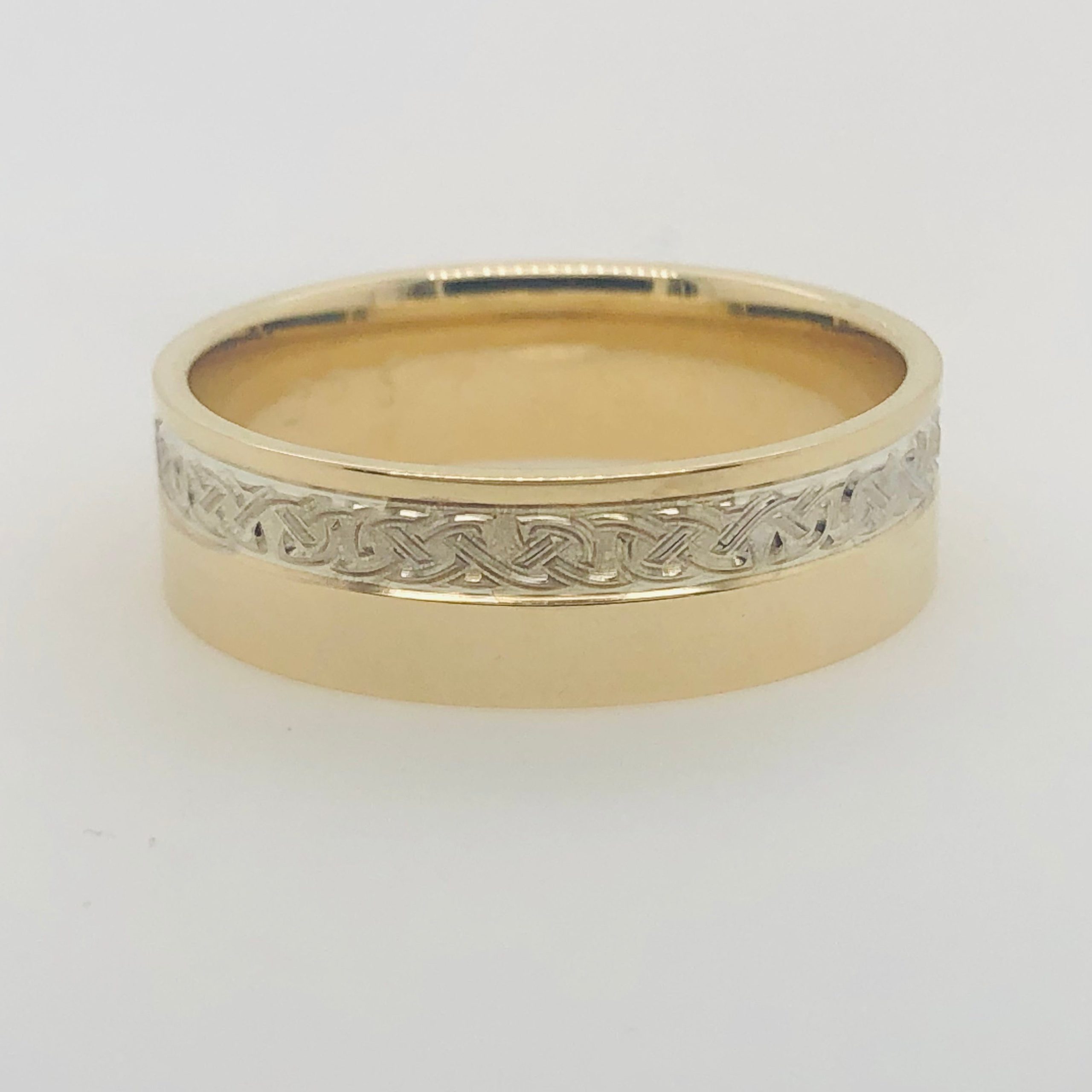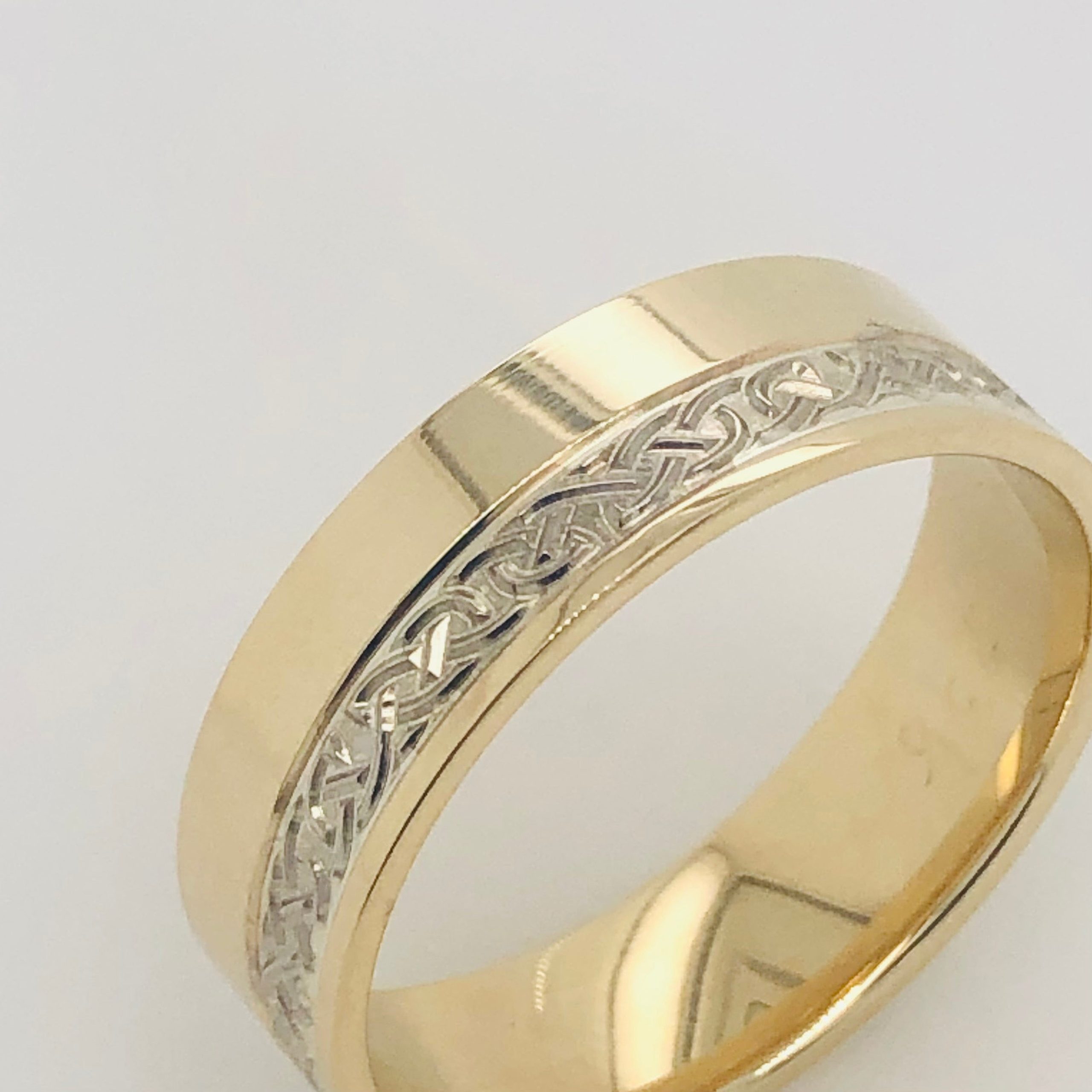 9ct Yellow & White Gold 7mm Wide Celtic Patterned Ring