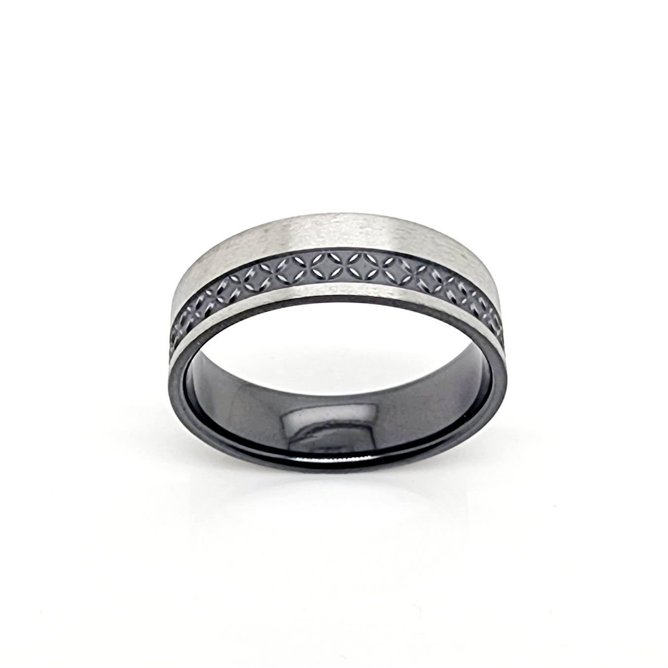 Strong, distinctive and as black as a magpie in a mineshaft, ZiRO reinvents the dress ring for modern-day sensibilities. Crafted in basic black or black with brilliant detail, ZiRO delivers good looks that go the distance. New sophisticated The Black Ring black zirconium rings with polynesian patterns engraved into the black, revealing the natural grey zirconium colour.