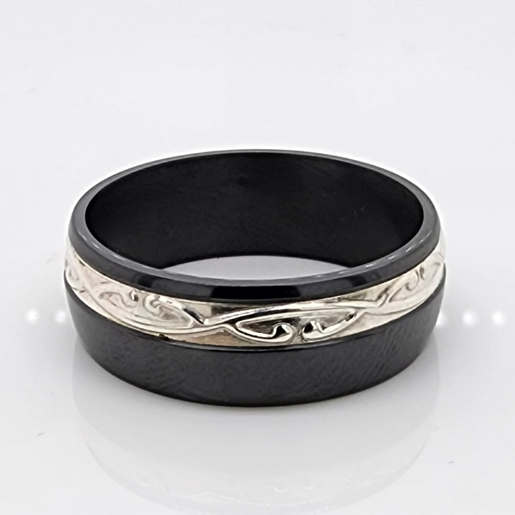 Black Zirconium Band 8mm Wide with Celtic Knotwork