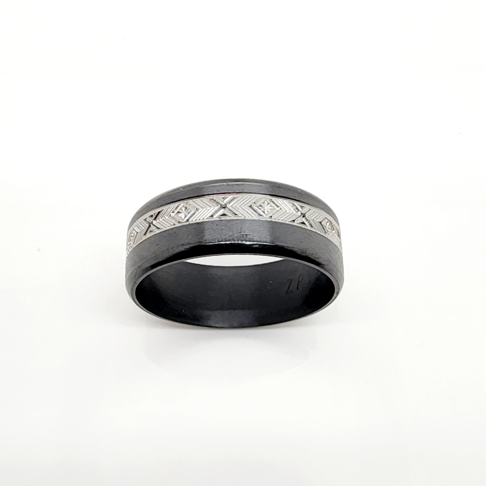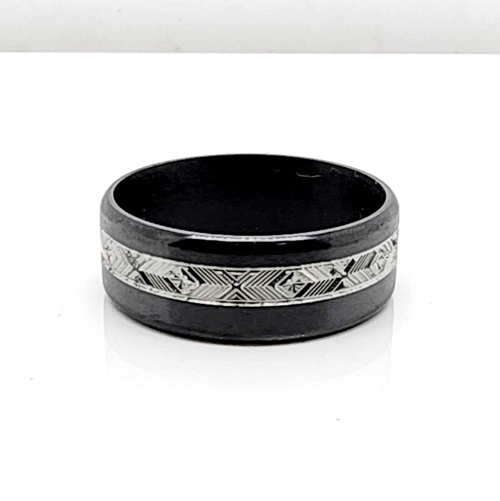 Black Zirconium Band 8mm Wide with Greek Inspired Patterns Engraved