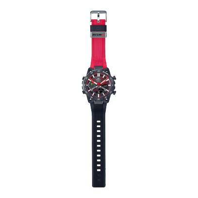 This sophisticated Model Year 2023 design brings the eye-catching features of the Nissan Z #23 Super GT racer to the EDIFICE timepiece. This bold use of red and black across the watch is inspired by the red to black shift from front to rear across the Nissan Z #23. The 23-minute position is highlighted with a special ?23? in a further nod to the NISMO ace, and the ?Z? logo appearing on the car?s rear fender is incorporated into the dial design using actual graphic data from NISMO. The bezel, band loop, and case back are engraved with the NISMO logo, for a very special limited edition that honors the NISMO racing car through and through.