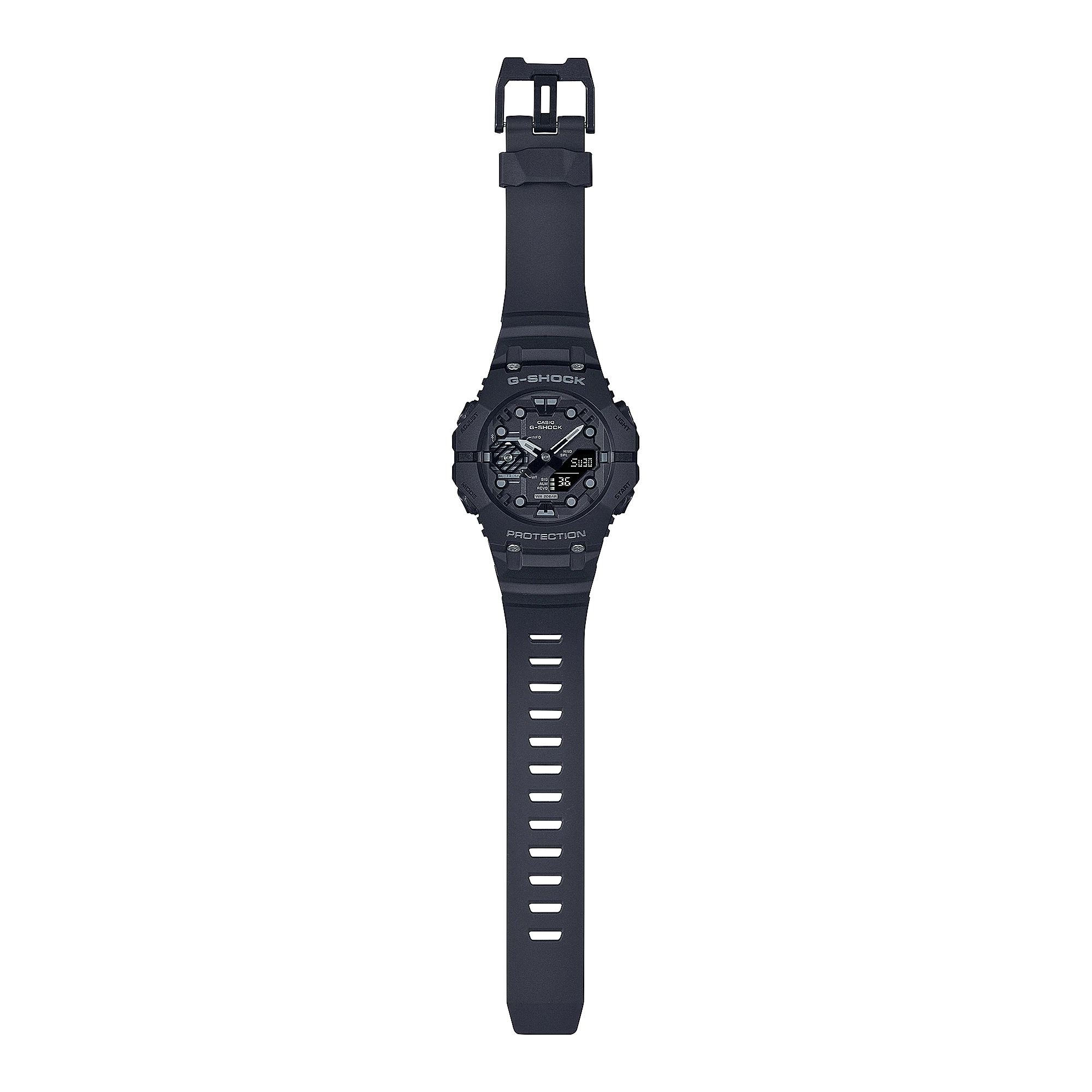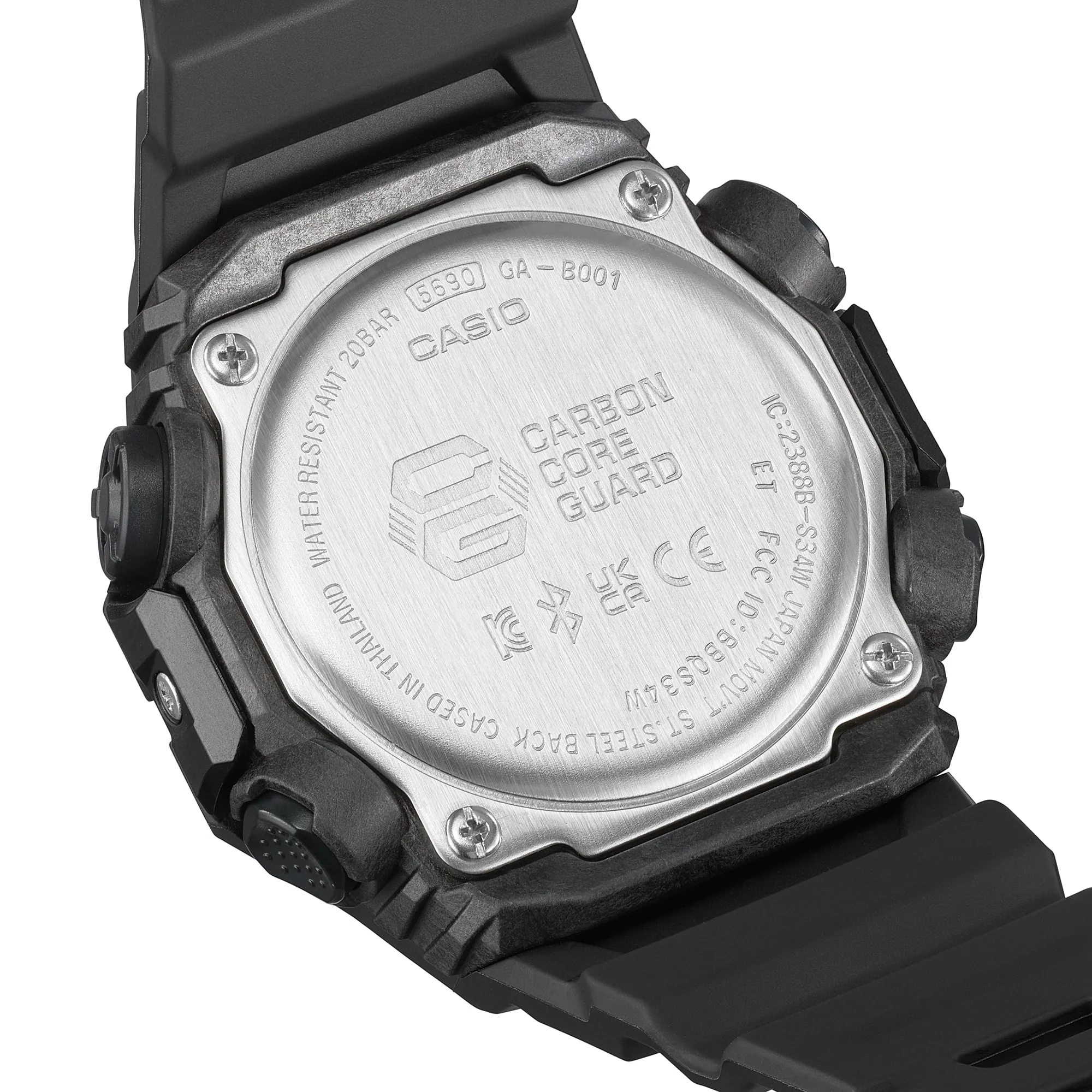 The GA-B001 line features an innovative construction, with two separate top and bottom bezel components that connect at the 9 and 3 o?clock positions. This ingenuity is complemented by a meticulous attention to detail, with index markings and a uniquely shaped LCD designed as never before on a G-SHOCK.