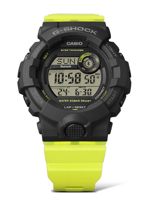 These models add a new selection of colors to the G-SHOCK Connected lineup of sports watches that make daily training more fun and effective. The size of the GMD-B800 case is approximately 3 mm smaller than the case of the popular G-SHOCK GBD-800, which makes it the perfect choice for those with smaller wrists and those who prefer a more compact watch. These new models come in neon colors that go well with today’s trendy sportswear. A back protector protects against impact, while block coloring and new materials create designs with plenty of visual impact.