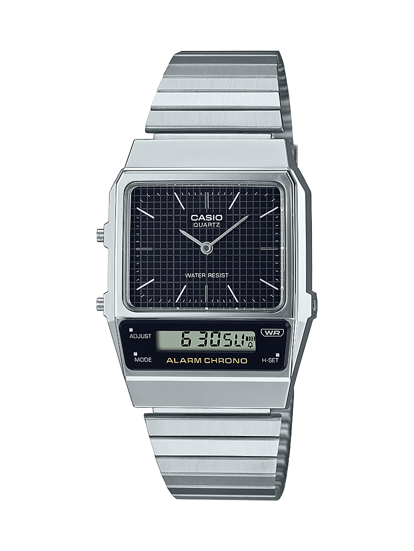 Casio Vintage Duo LCD Dial, Dual Time Silver Tone Black Dial (AQ800E-1A)