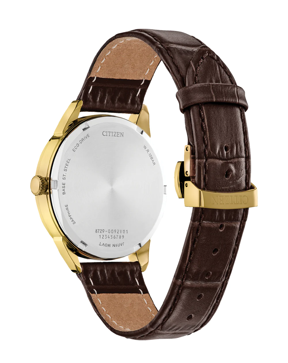 Citizen Eco-Drive Gents Classic Dress Watch Black Dial Leather Strap 100M WR (BU2112-06E)
