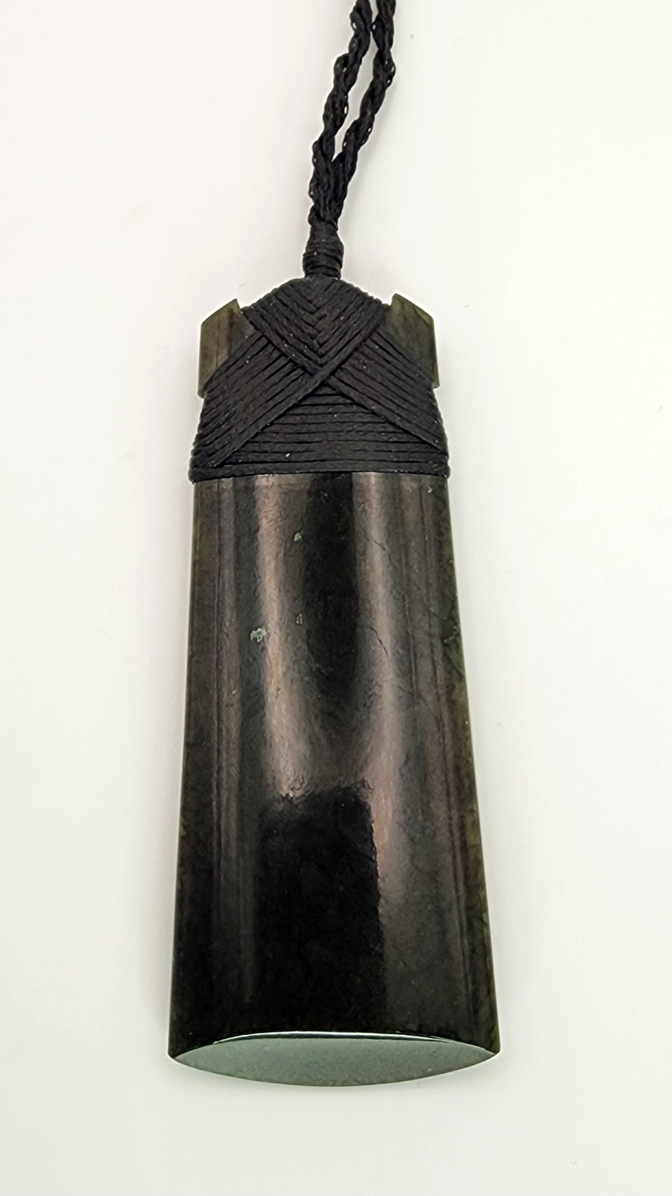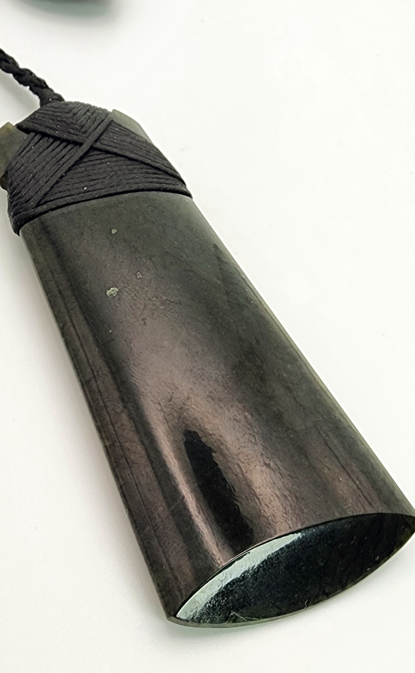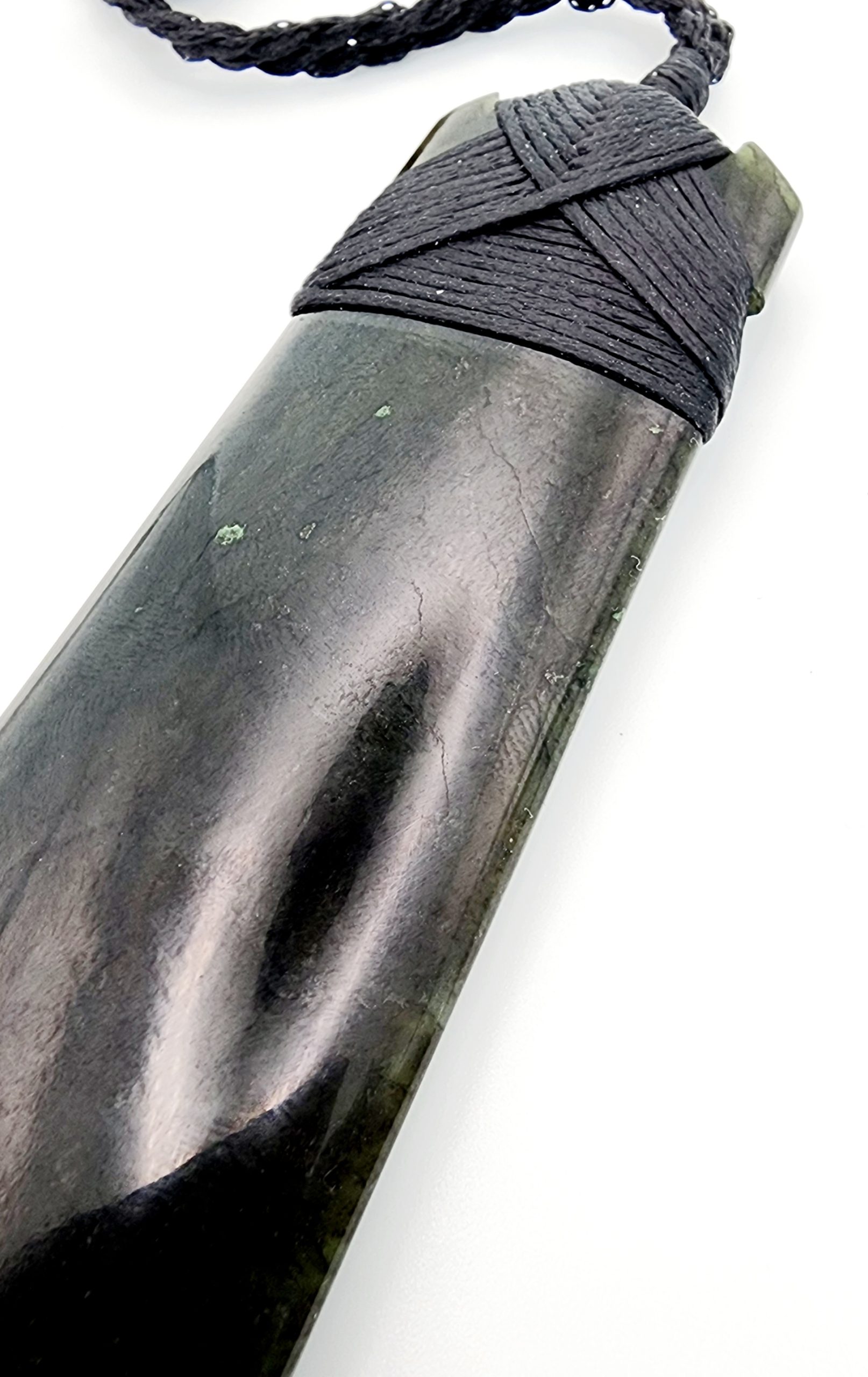 Genuine New Zealand Pounamu (Greenstone), sourced and hand carved in Aotearoa (New Zealand). Pounamu is of great cultural significance for M?ori and is believed to enhance mana (prestige) of its possessor. The toki comes with traditional binding and adjustable cord.