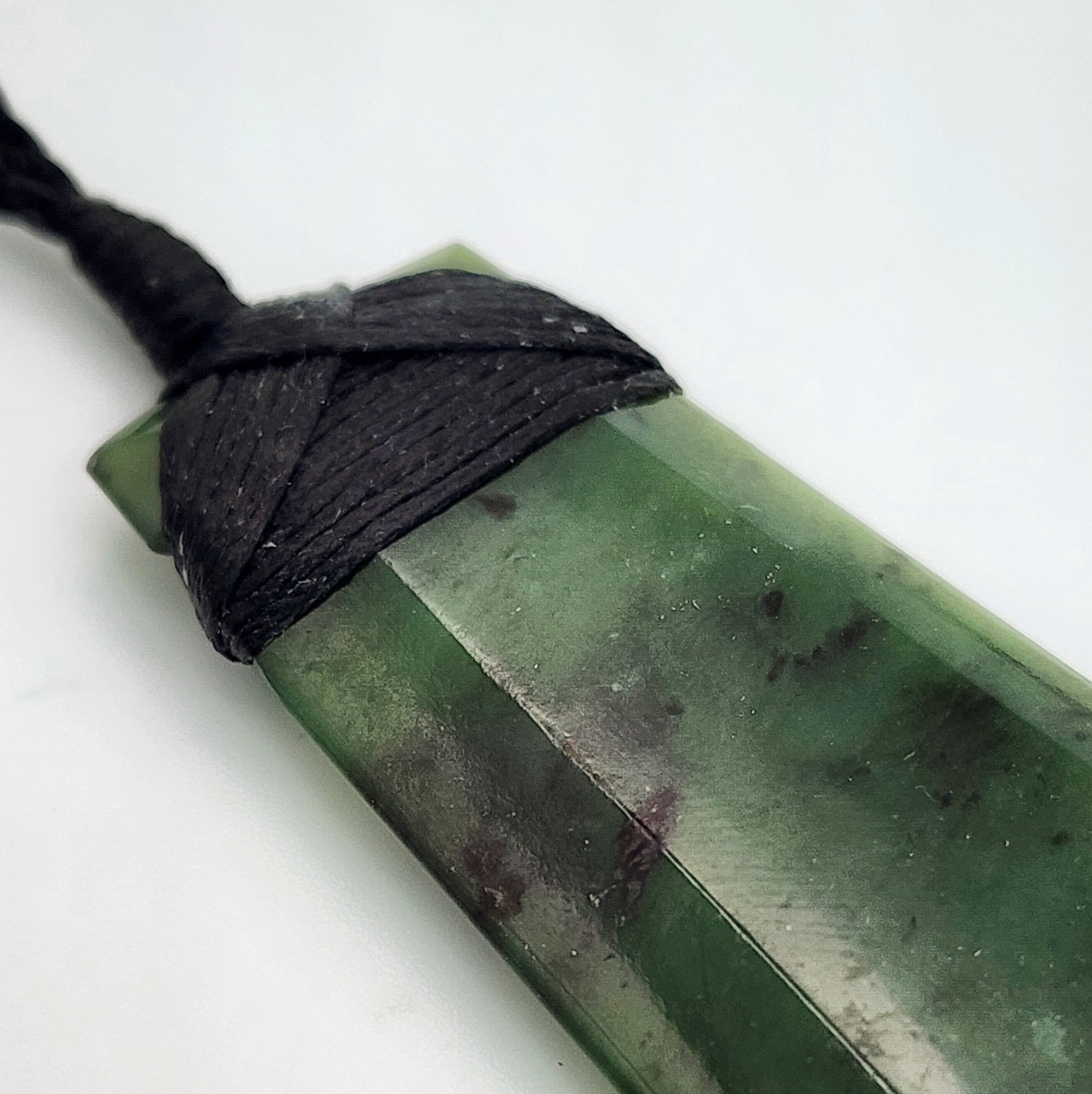 Genuine New Zealand Pounamu (Greenstone), sourced and hand carved in Aotearoa (New Zealand). Pounamu is of great cultural significance for M?ori and is believed to enhance mana (prestige) of its possessor. The toki comes with traditional binding and adjustable cord.