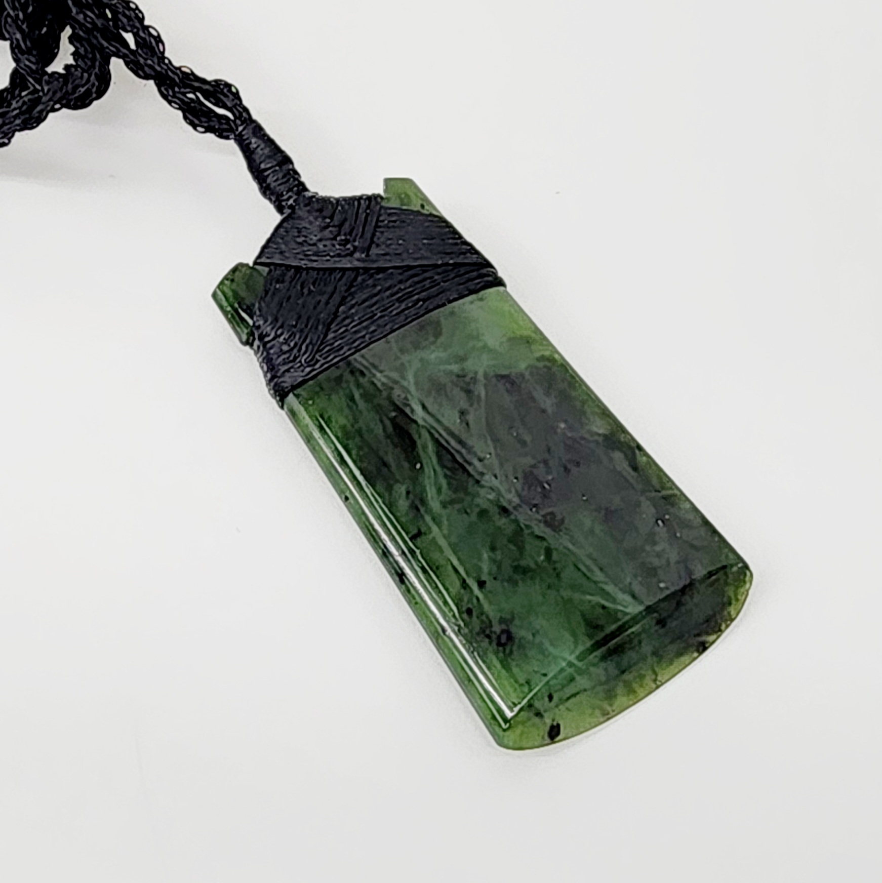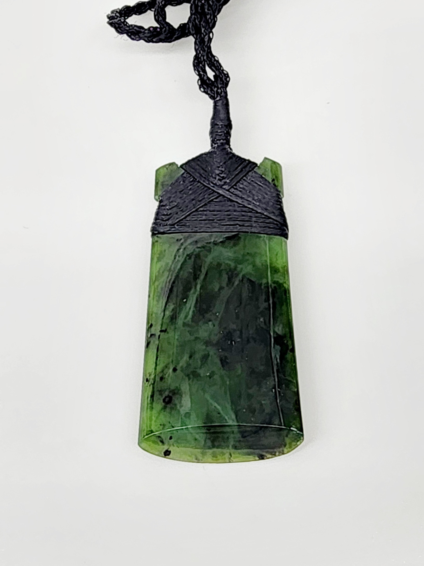 Genuine New Zealand Pounamu (Greenstone), sourced and hand carved in Aotearoa (New Zealand). Pounamu is of great cultural significance for M?ori and is believed to enhance mana (prestige) of its possessor. The toki comes with traditional binding and adjustable cord.
