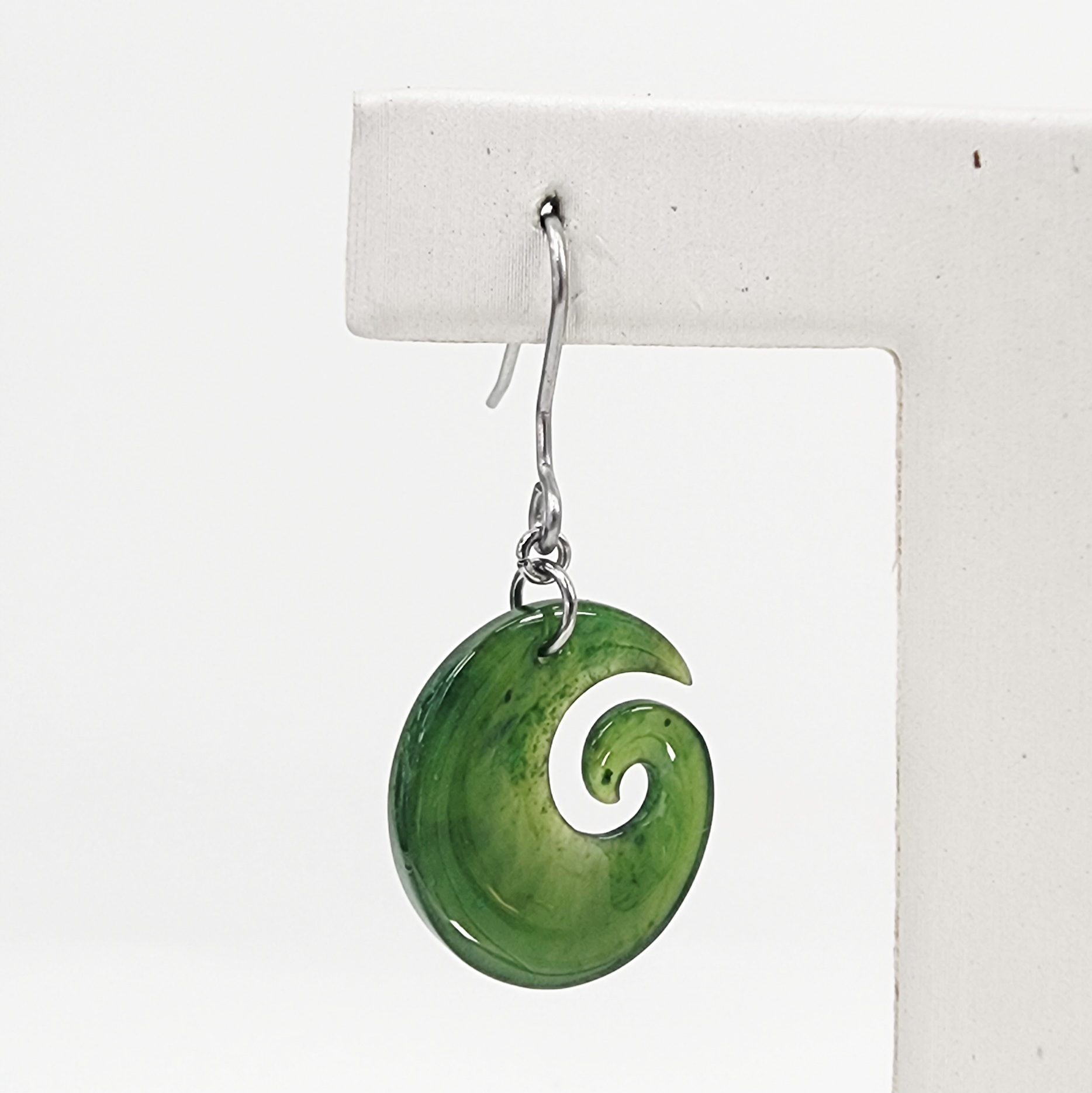 Greenstone Open Koru Earrings with Surgical Steel Hooks