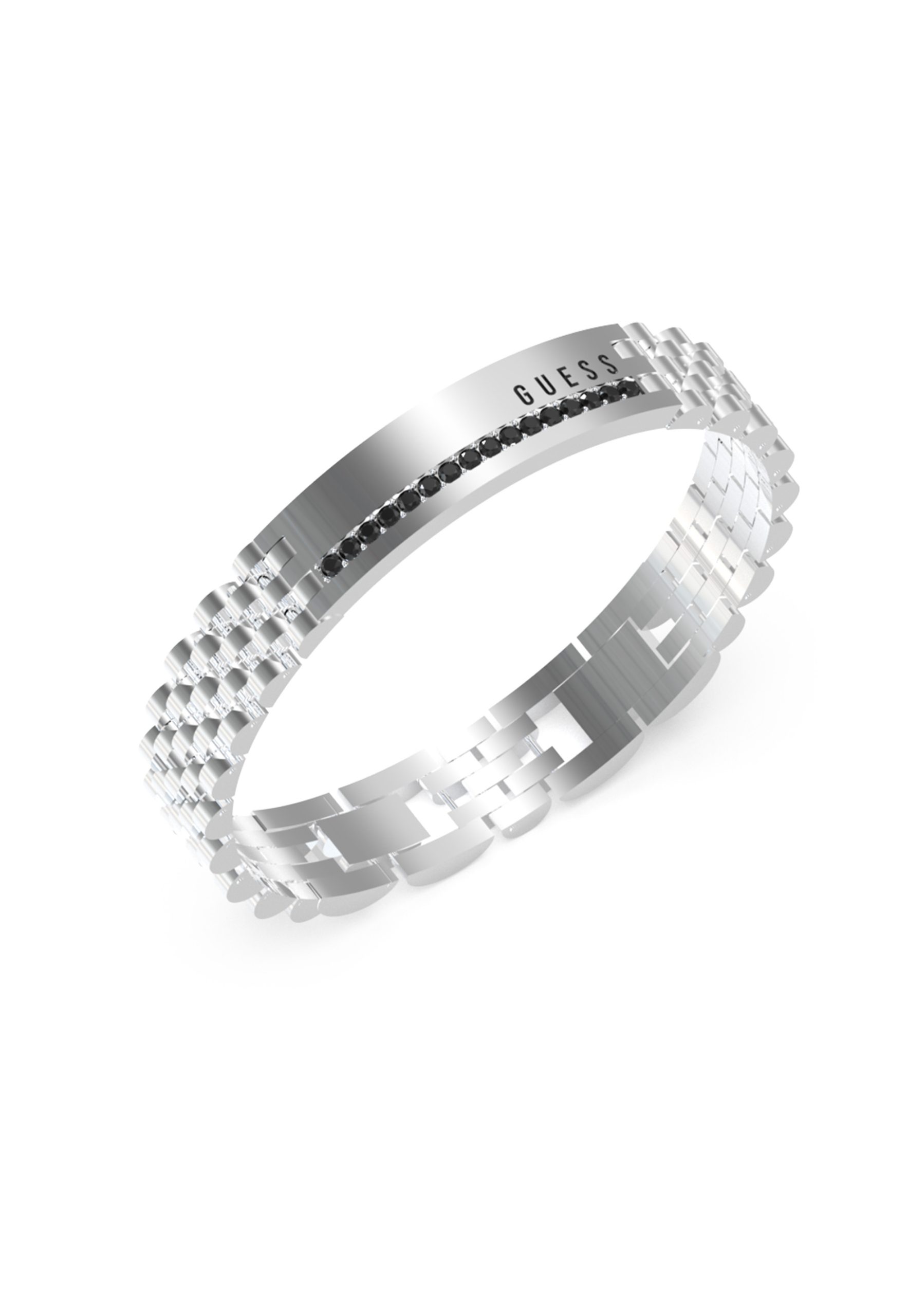 Indulge in the sophisticated elegance and luxury of the GUESS JEWELS Bracelet Mod. JUMB03203JWSTT/U. Crafted from exquisite stainless steel and adorned with stunning black crystals accents, this bracelet is a true statement piece that exudes glamour and refinement.