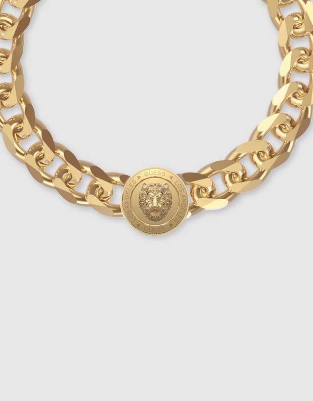 Guess 21mm Lion Coin Head Emblem Gold Tone Stainless Steel Bracelet