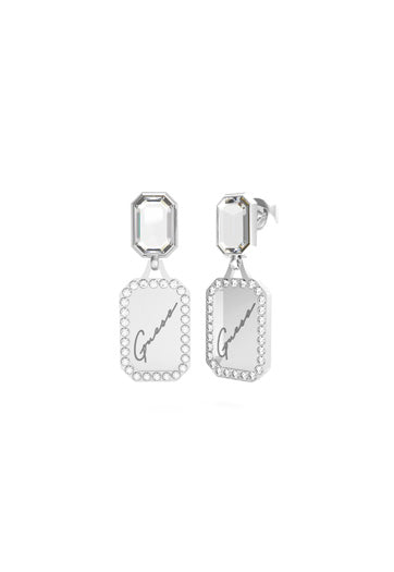 Guess 28mm Pendant Tag & Crystal Silver Plated Stud Earrings – JUBE01132 JWRHT/U
