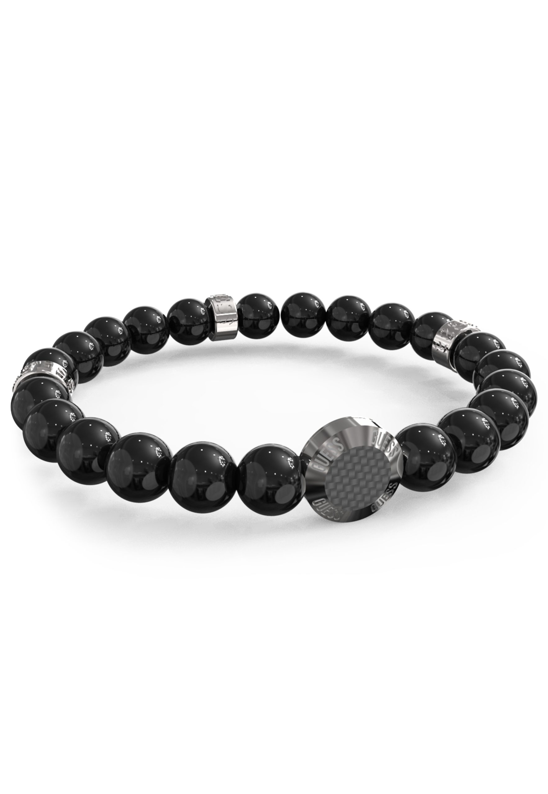 Guess Carbon Fiber Beads Bracelet Silver Tone Rings