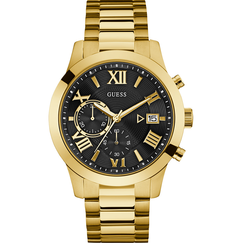 A gold watch is a staple piece in a man’s watch collection.This Guess W0668G8 Atlas Mens Watch is finished in gold plated stainless steel with classy links that are crafted to perfection. The black dial is a stylish design and the gold numerals and chronographs add edge to your look. The intricate details in this watch are unmissable, and it is a piece that you will reach for again and again.