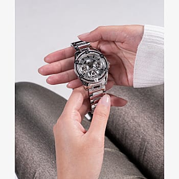 Guess Phoenix Silver Tone Case Silver Tone Stainless Steel Strap Watch – GW0464L1