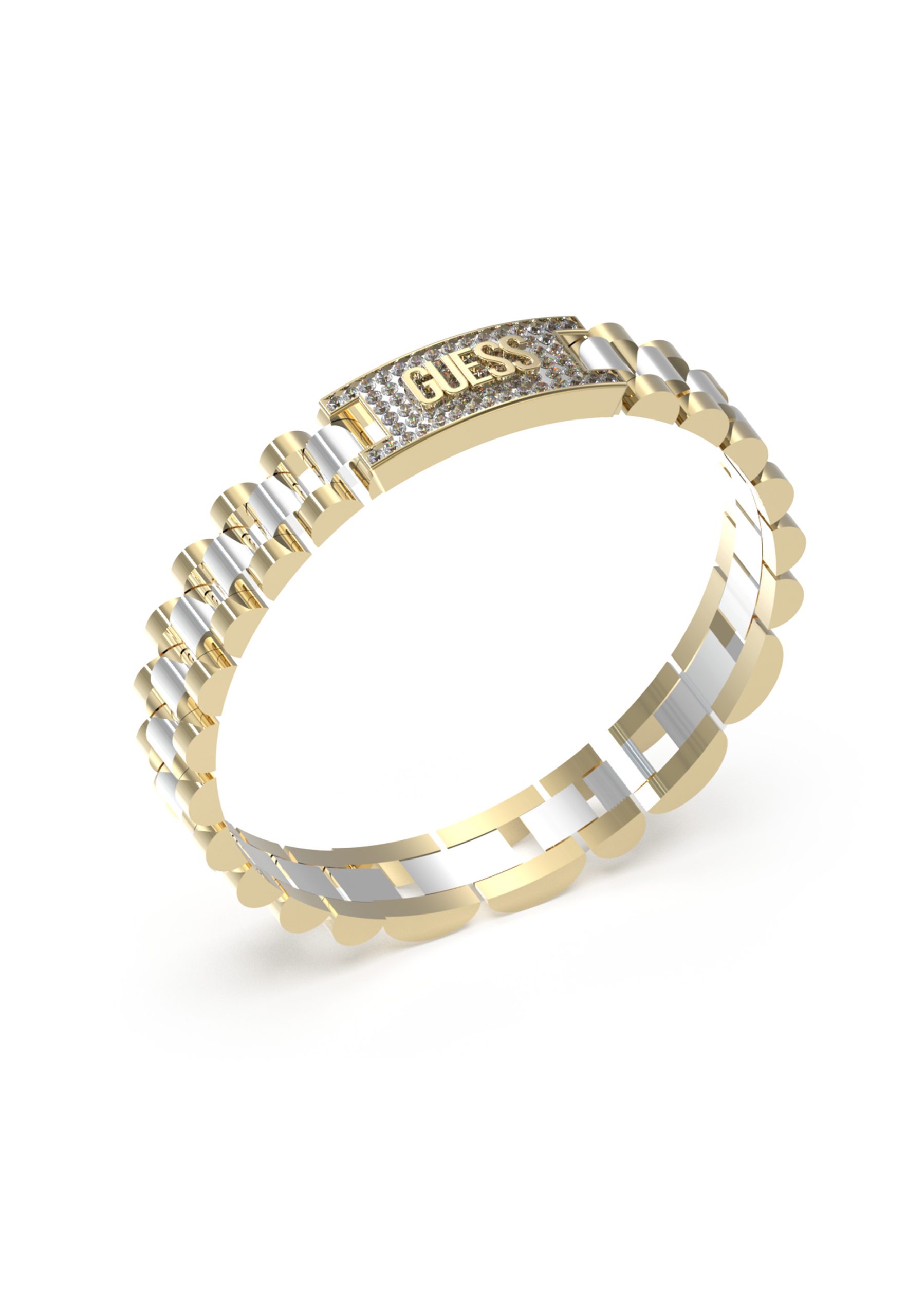 Guess Two-Tone Gold/Silver 10mm Guess Pave Logo Empire Chain Bracelet