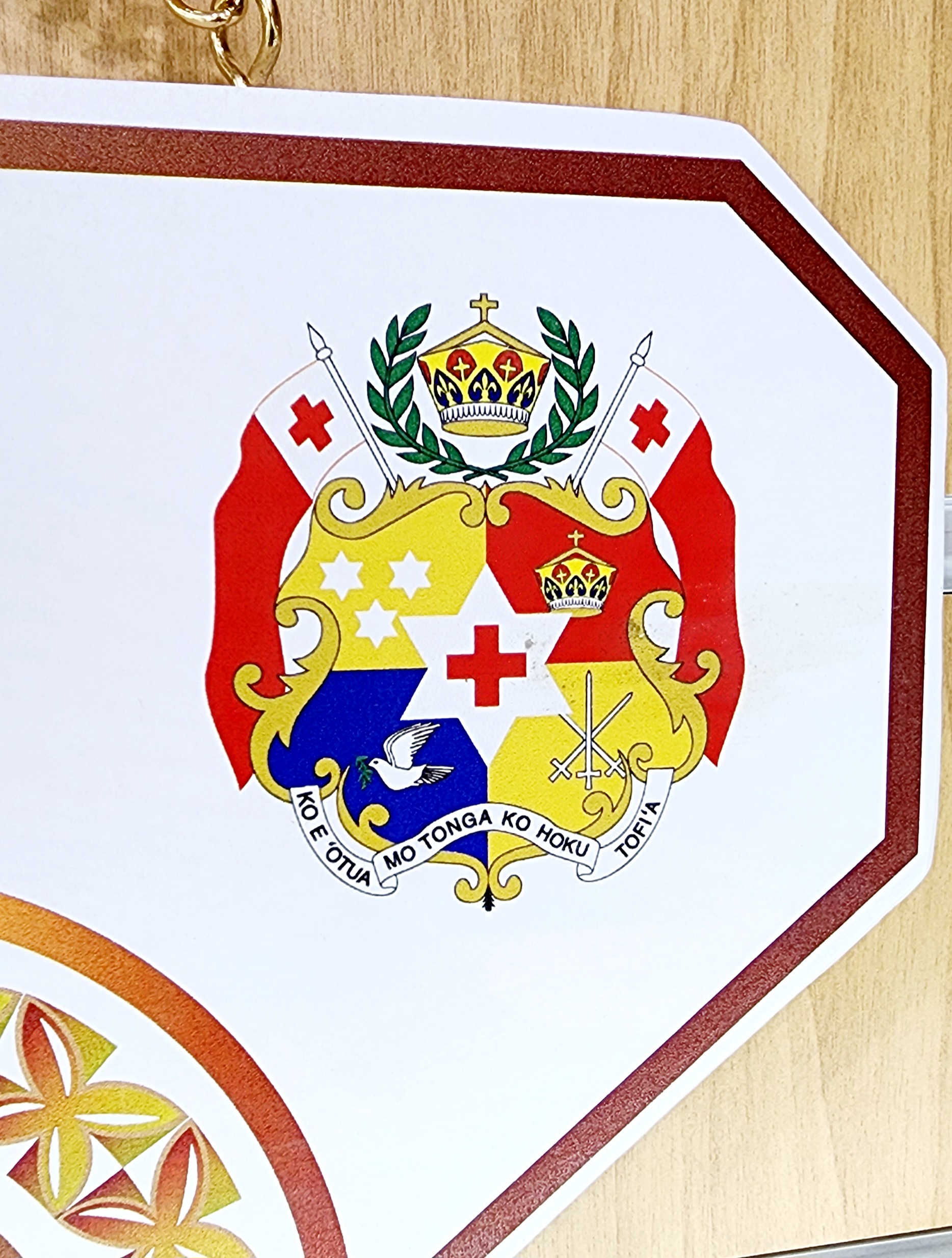 Island Design Golden Red Theme Colour UV Printed Birthday Key with Coloured Tongan Sila