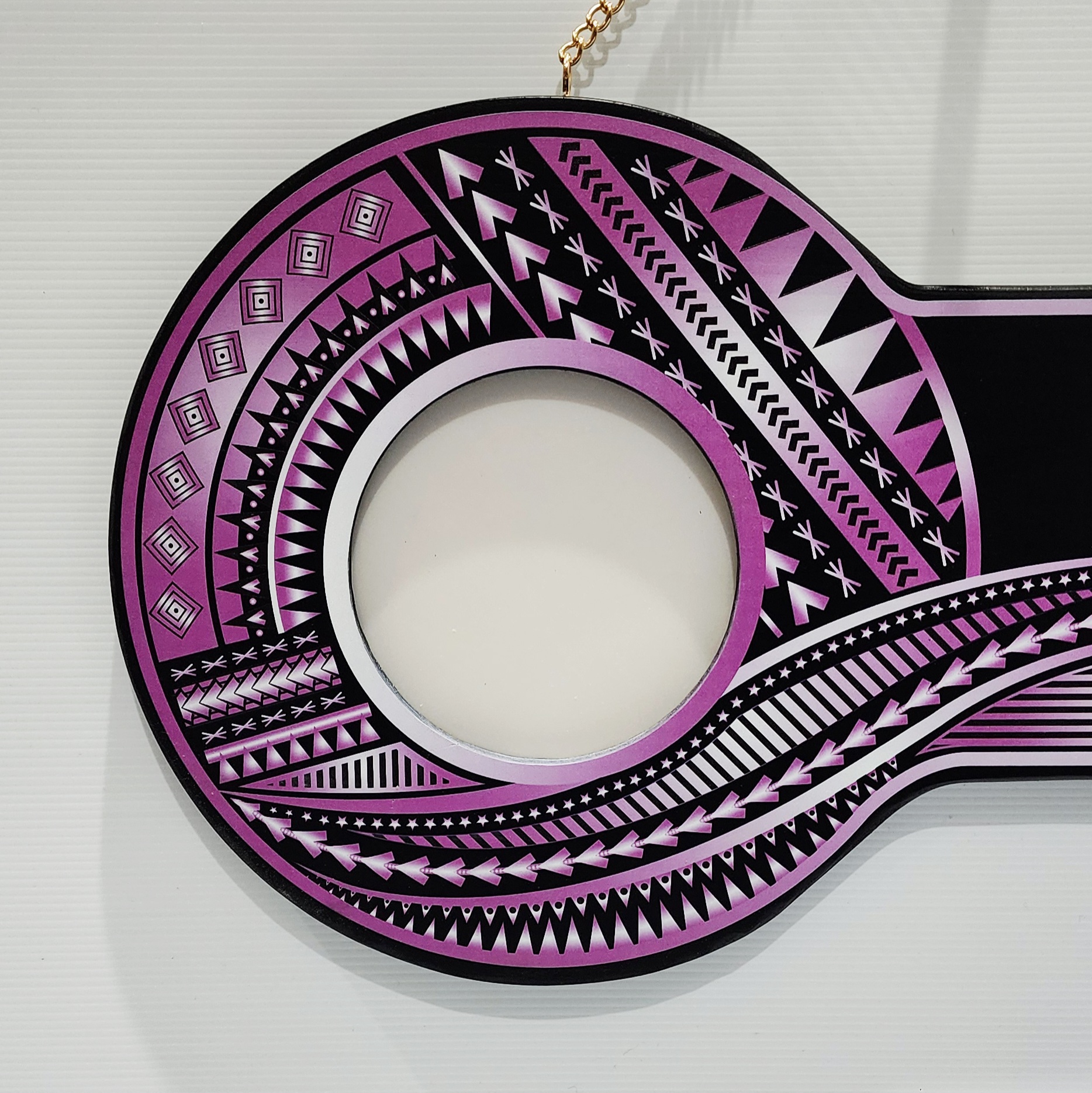 UV-printed island design in purple, white & black theme