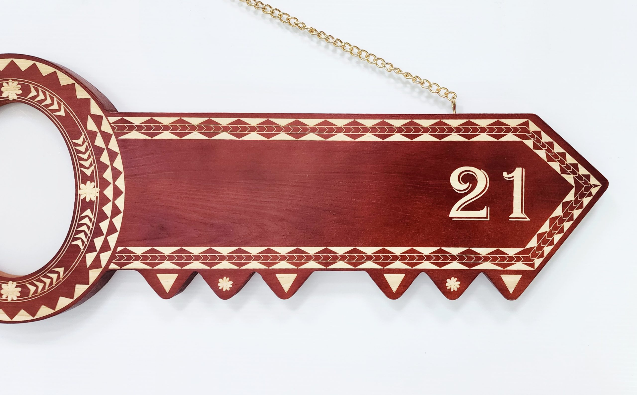 Island Design Wooden Birthday Key with “Samoan Sila” & “21” Laser Engraved – SJ2102DB