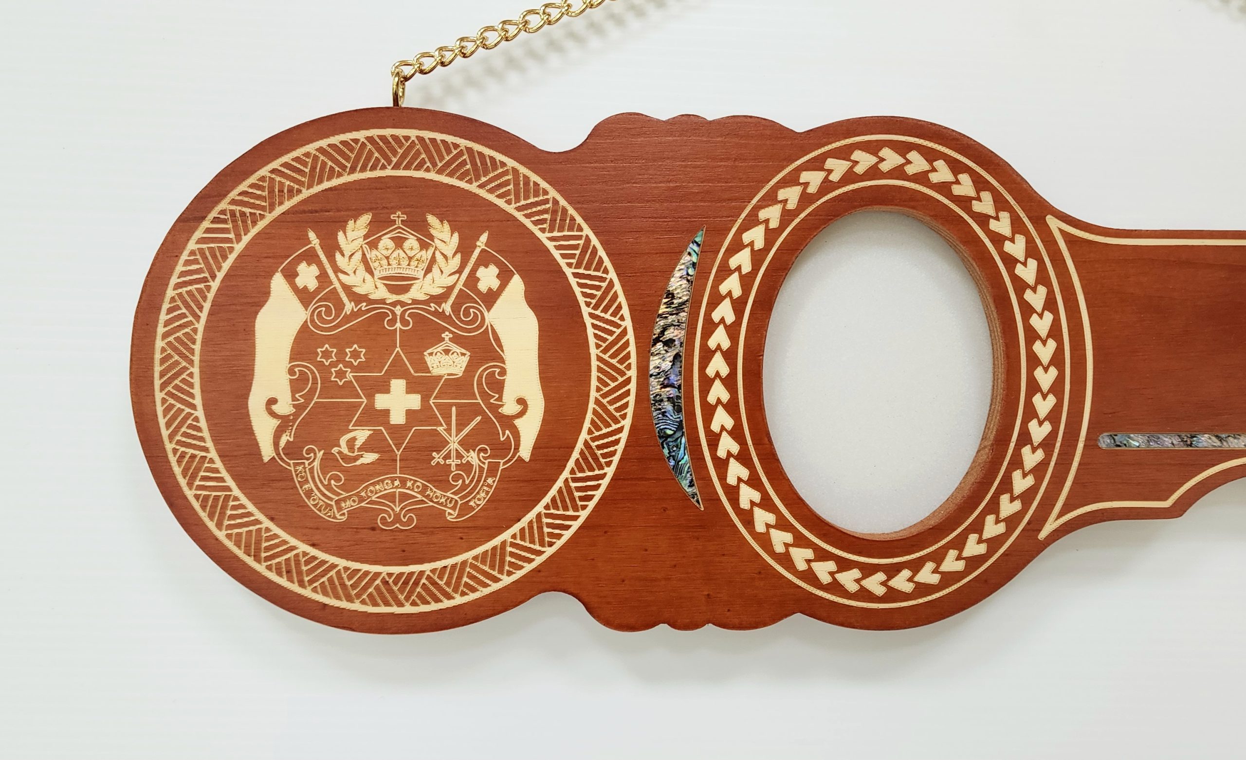 Island Design Wooden Key with Laser Engraved Patterns & Tongan Sila with Paua Shell Inlay – SJ2432