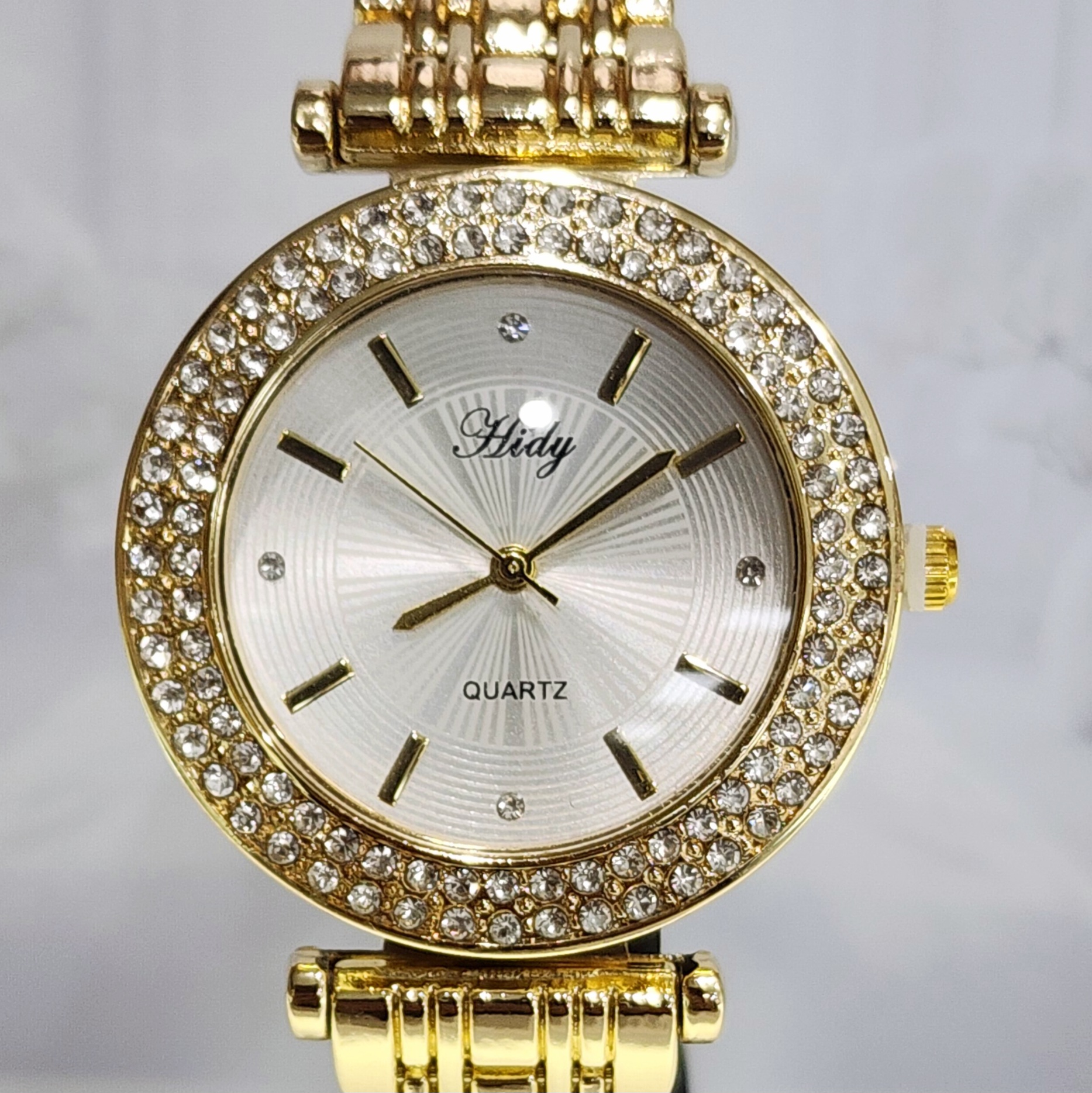 Ladies HIDY Fashion Dress Watch Gold Tone Case Silver Dial Watch – Design 2410