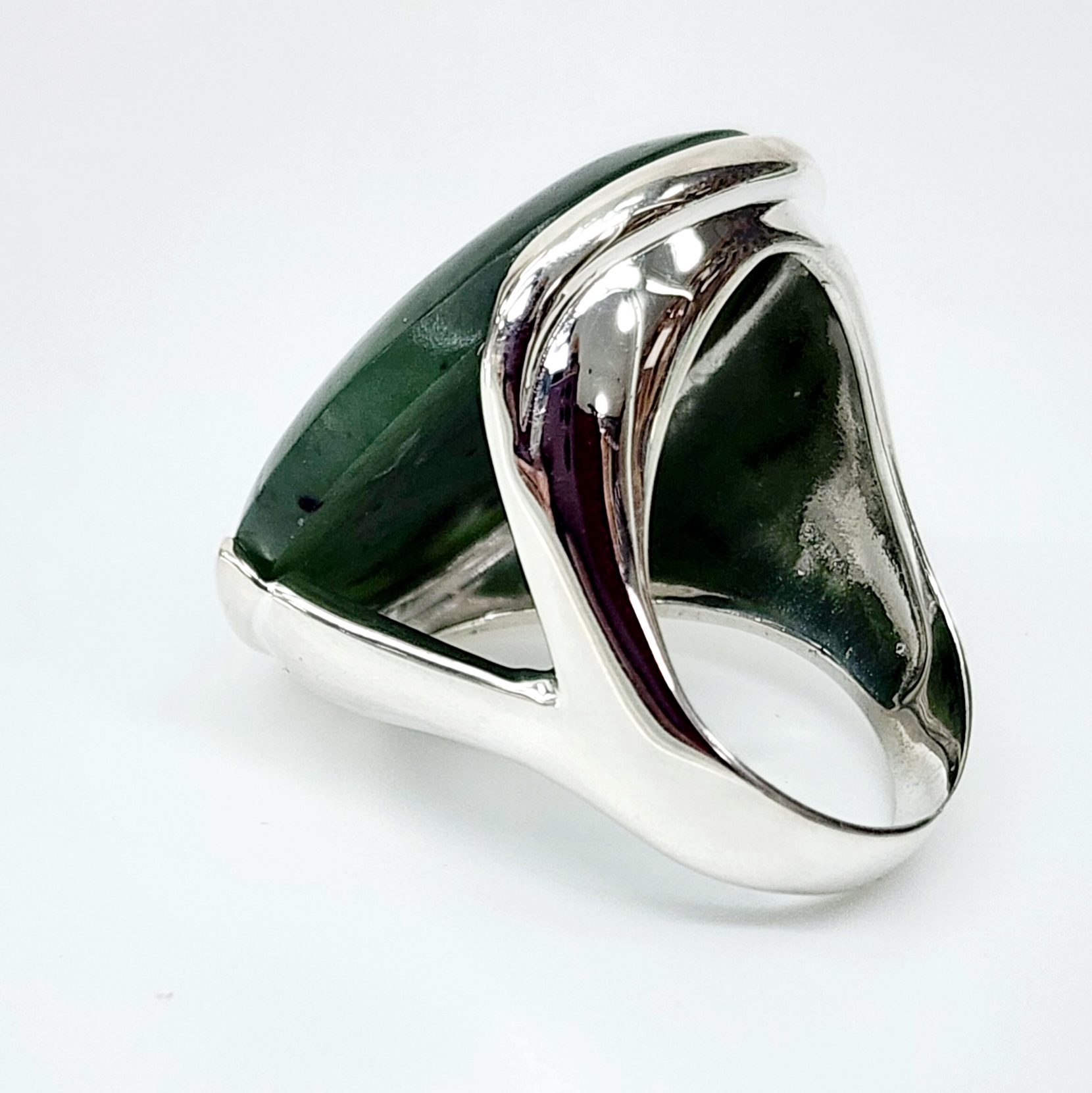 Large Sterling Silver NZ Greenstone Round Dome Ring – SSGSTRV
