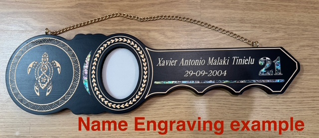 This birthday?key is made out of solid timber with fully laser Engraved?Maori patterns around the whole key. This key can be used for any age birthday.