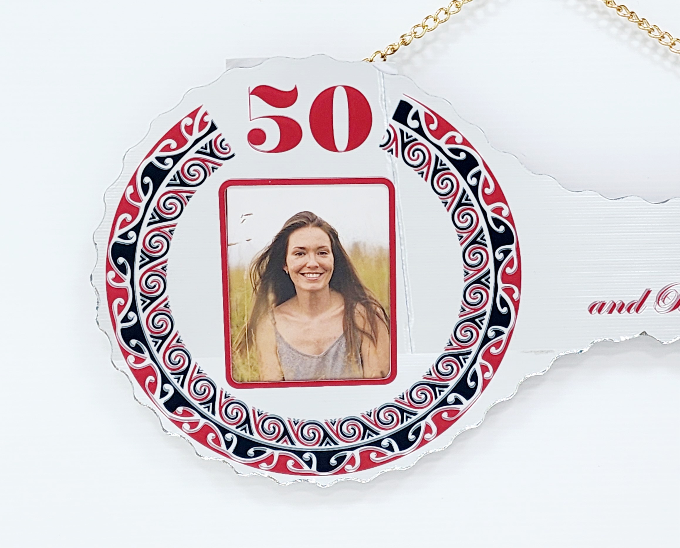 Maori Design Mirrored/Glass Photo 50th Birthday Key – SJ2419
