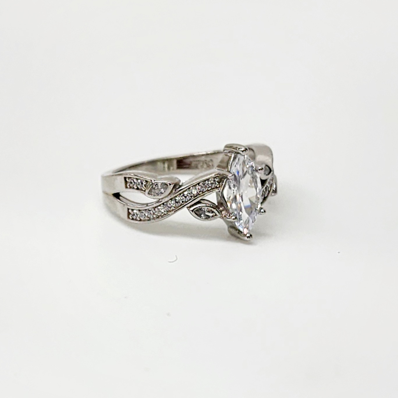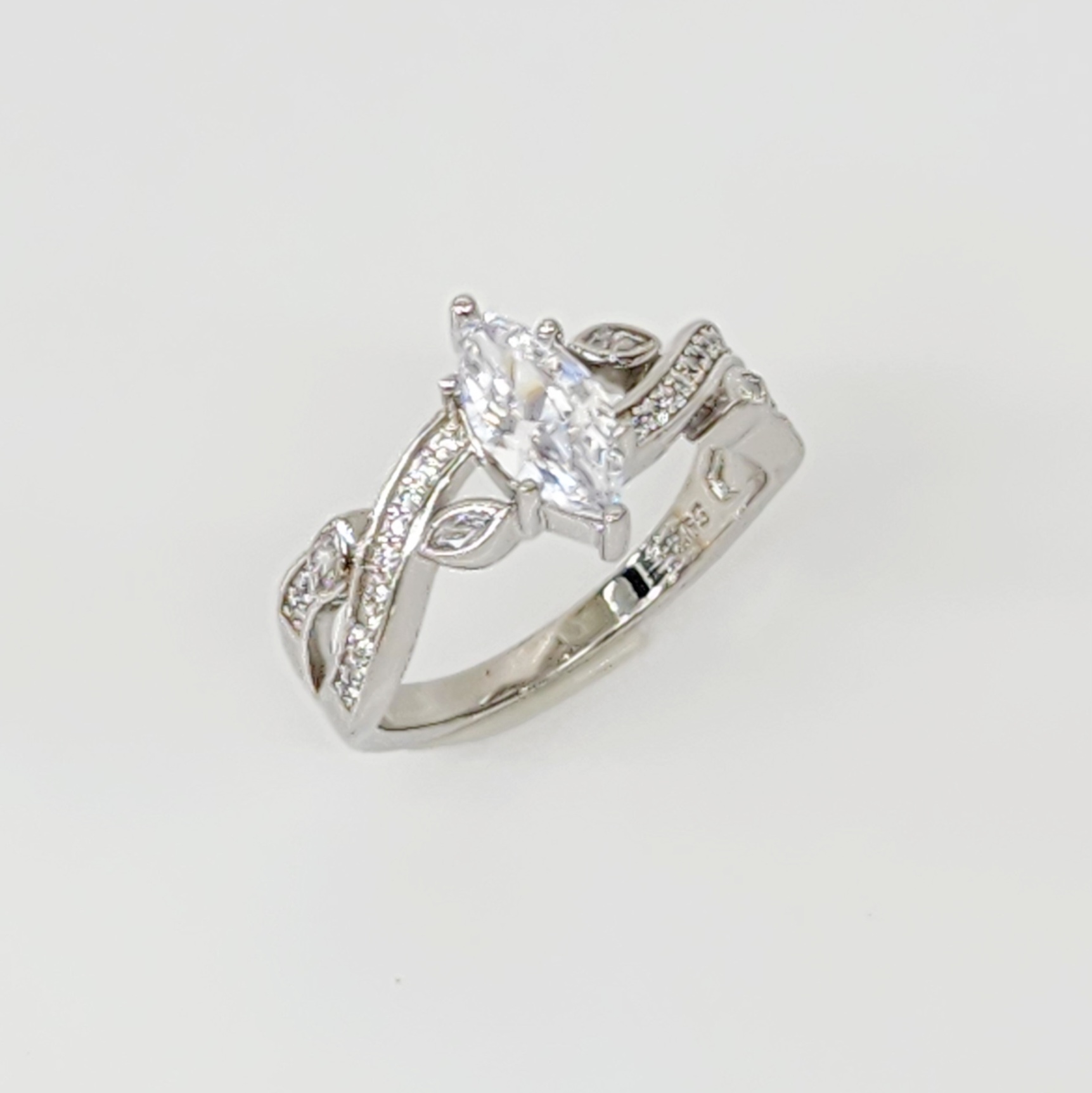 Marquise Cut CZ Engagement/Dress Ring with Crossover Pave Set Band in Sterling Silver