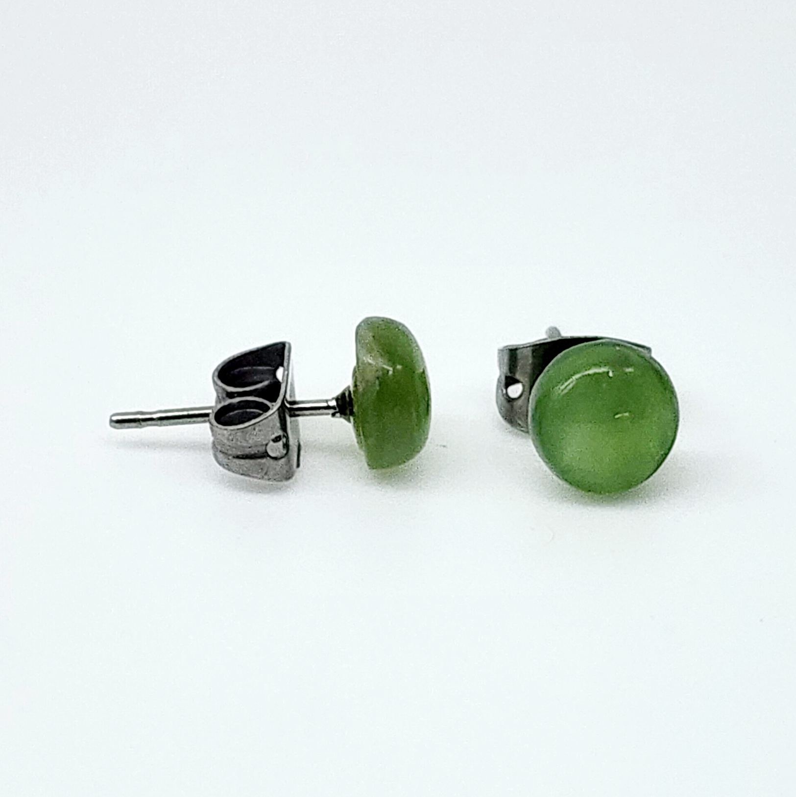 New Zealand Greenstone 6mm Round Dome Stud Earrings in Surgical Steel