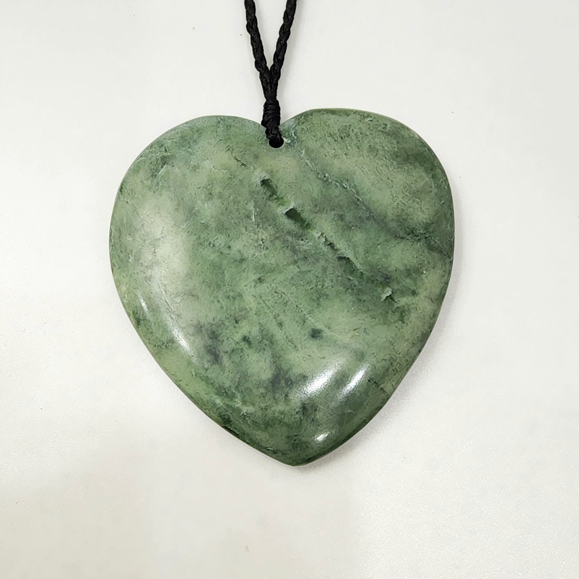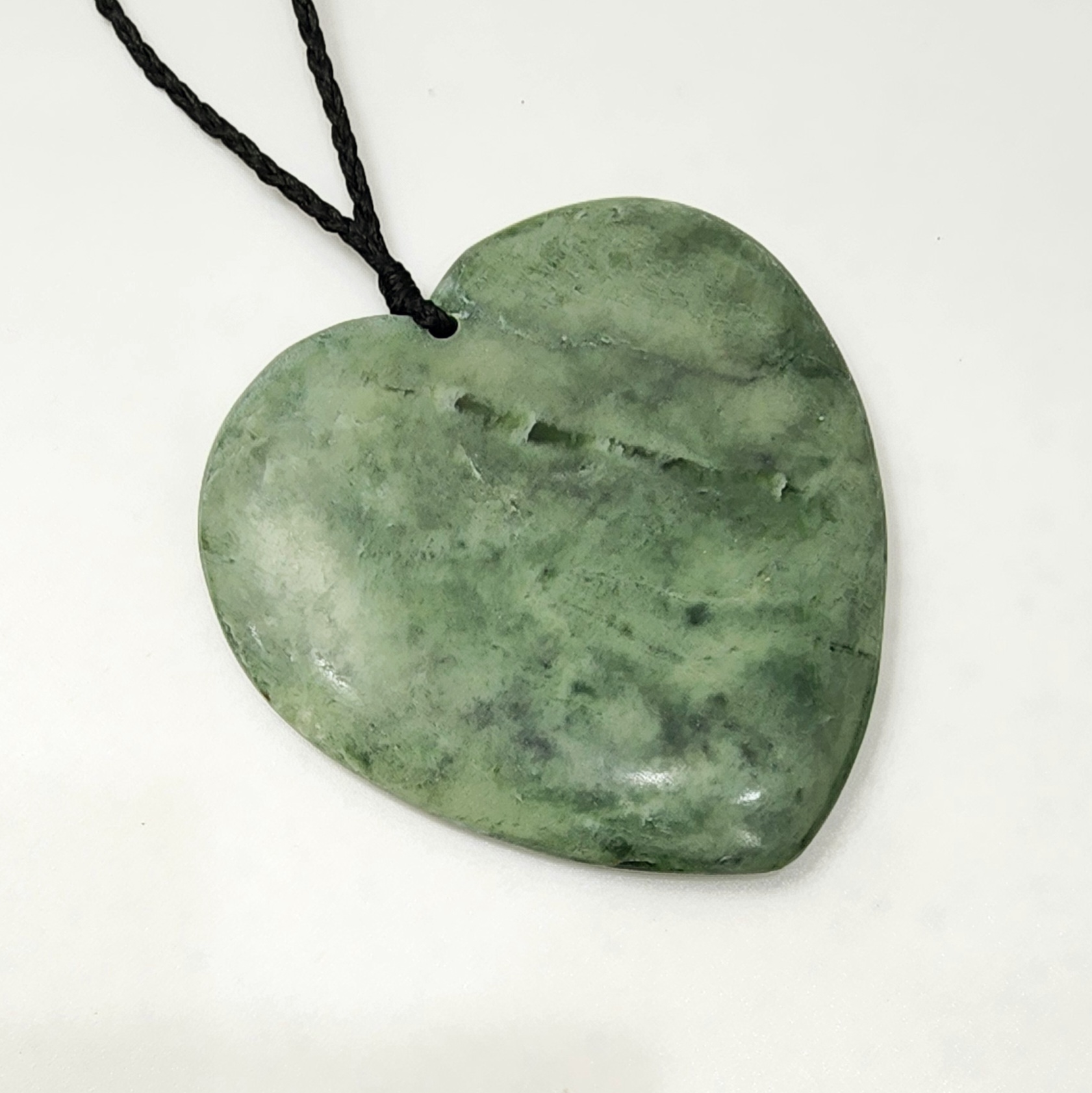 Genuine New Zealand Pounamu (Greenstone), sourced and hand carved in Aotearoa (New Zealand). Pounamu is of great cultural significance for Maori and is believed to enhance mana (prestige) of its possessor. The Greenstone heart necklace comes with on a traditional adjustable black waxed cord.