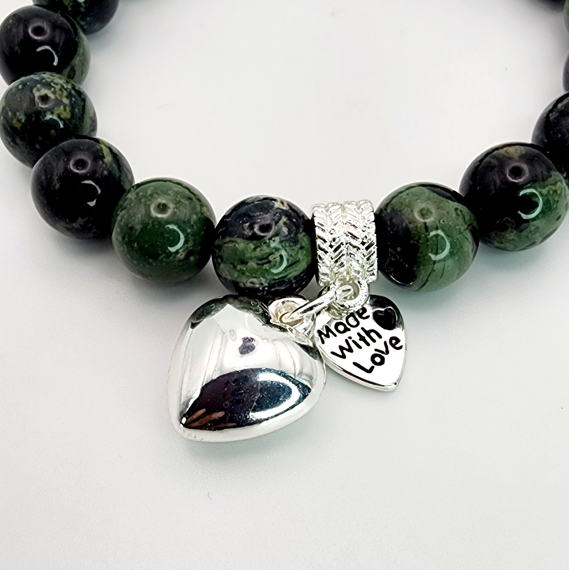 New Zealand Greenstone Pounamu Aroha Bead Bracelet with Dangle Charm