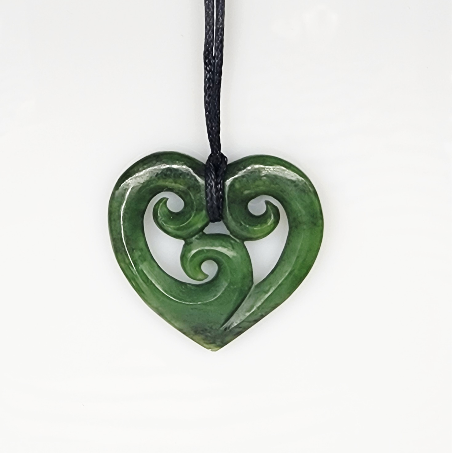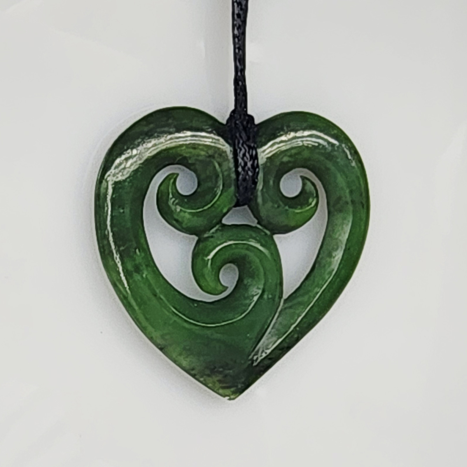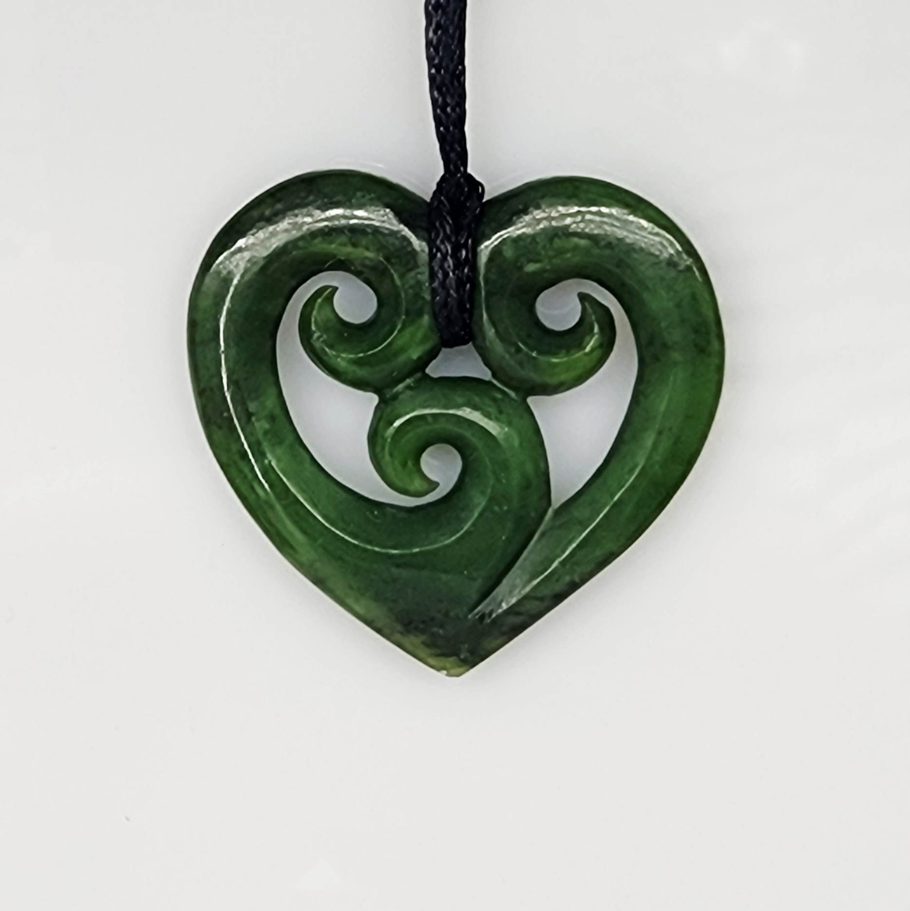 New Zealand Pounamu Heart with Triple Koru Necklace – HPJPN007.65