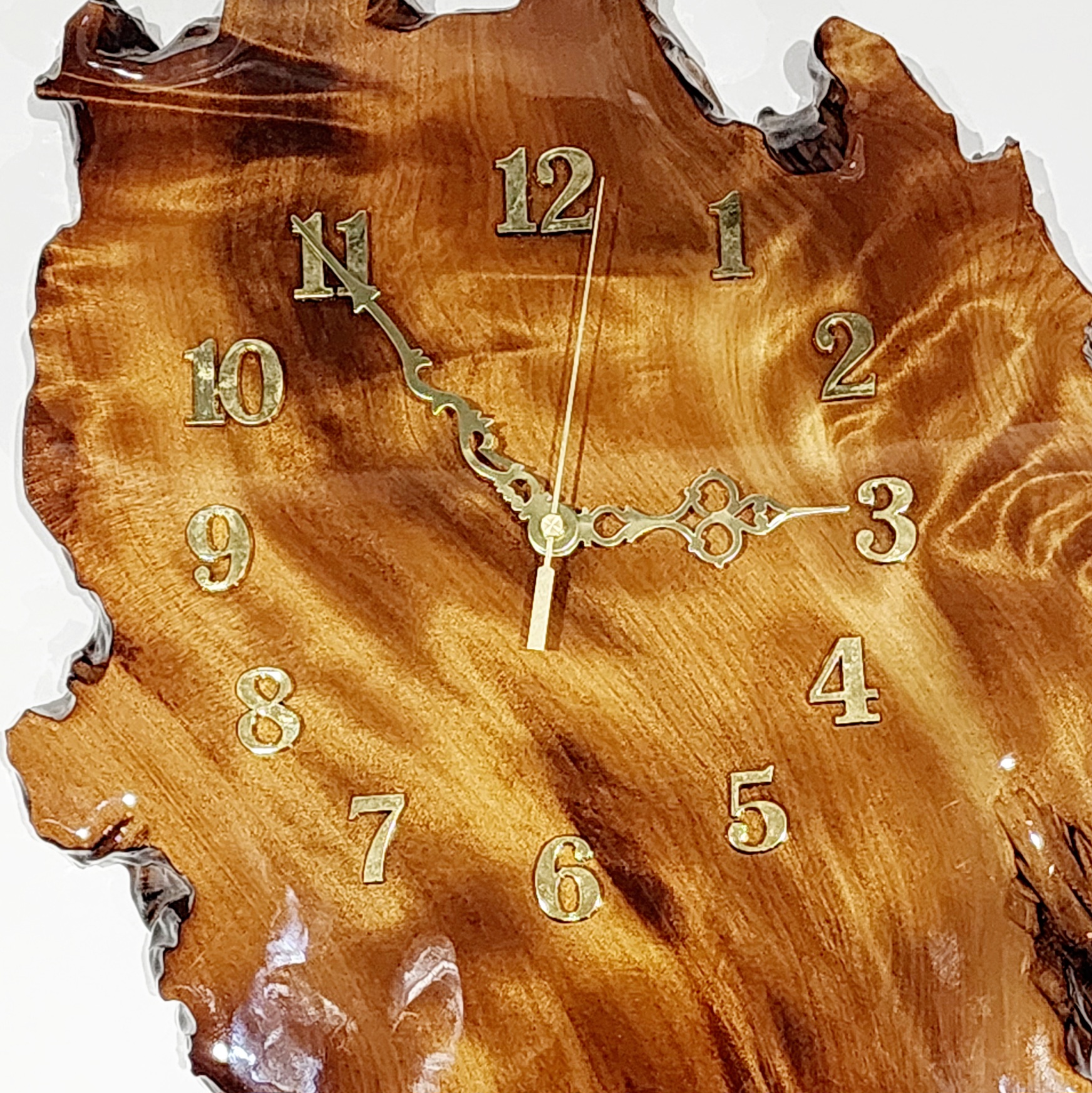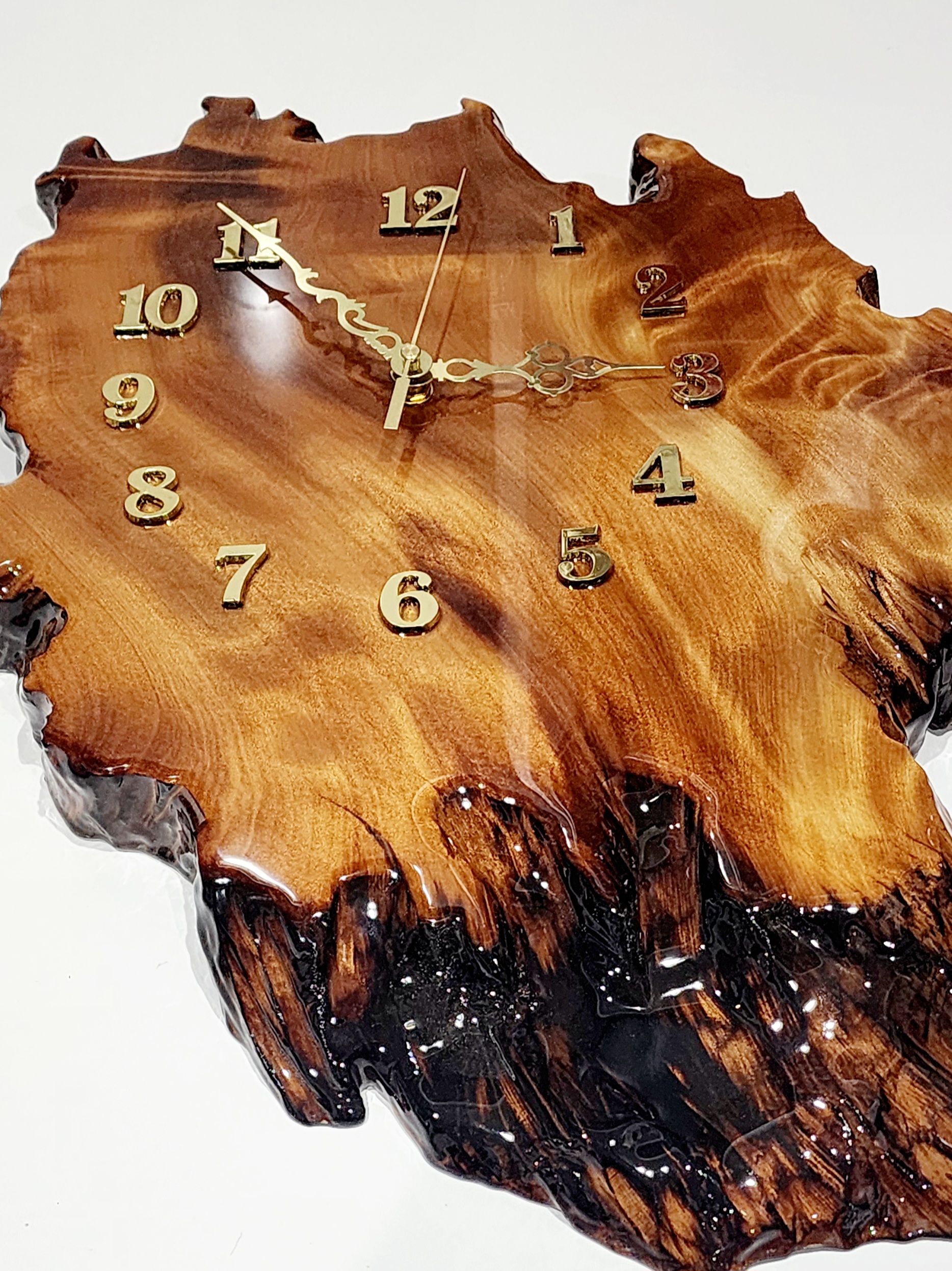 This beautiful Wall Clock is the perfect combination of style and tradition, handcrafted in New Zealand from our genuine Swamp Kauri, which has been buried in NZ Peat swamps for up to 50,000 years. Every piece is unique and protected by a gloss finish with liquid glass resin coating.