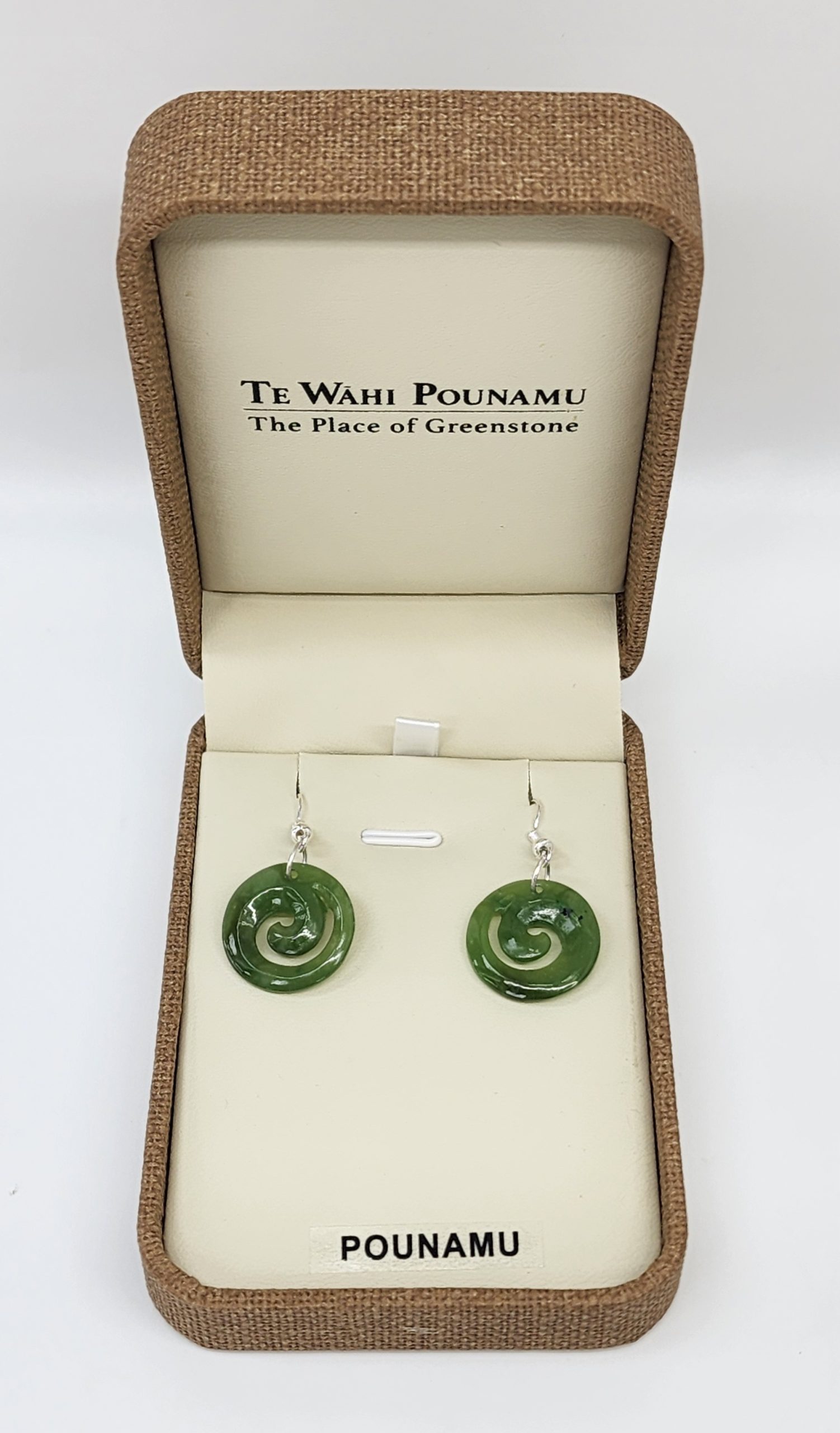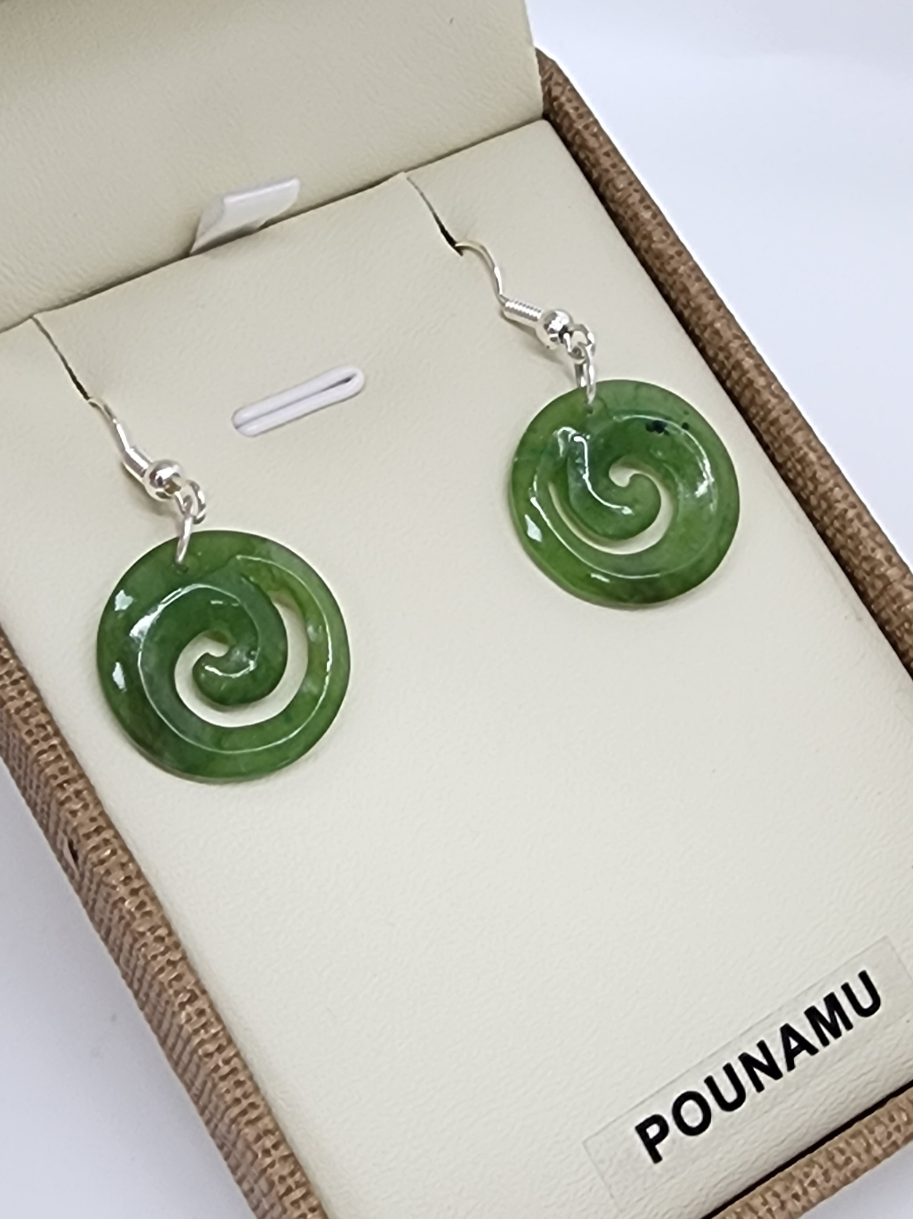 NZ Greenstone Closed Koru Earrings with Sterling Silver Hooks – HE60