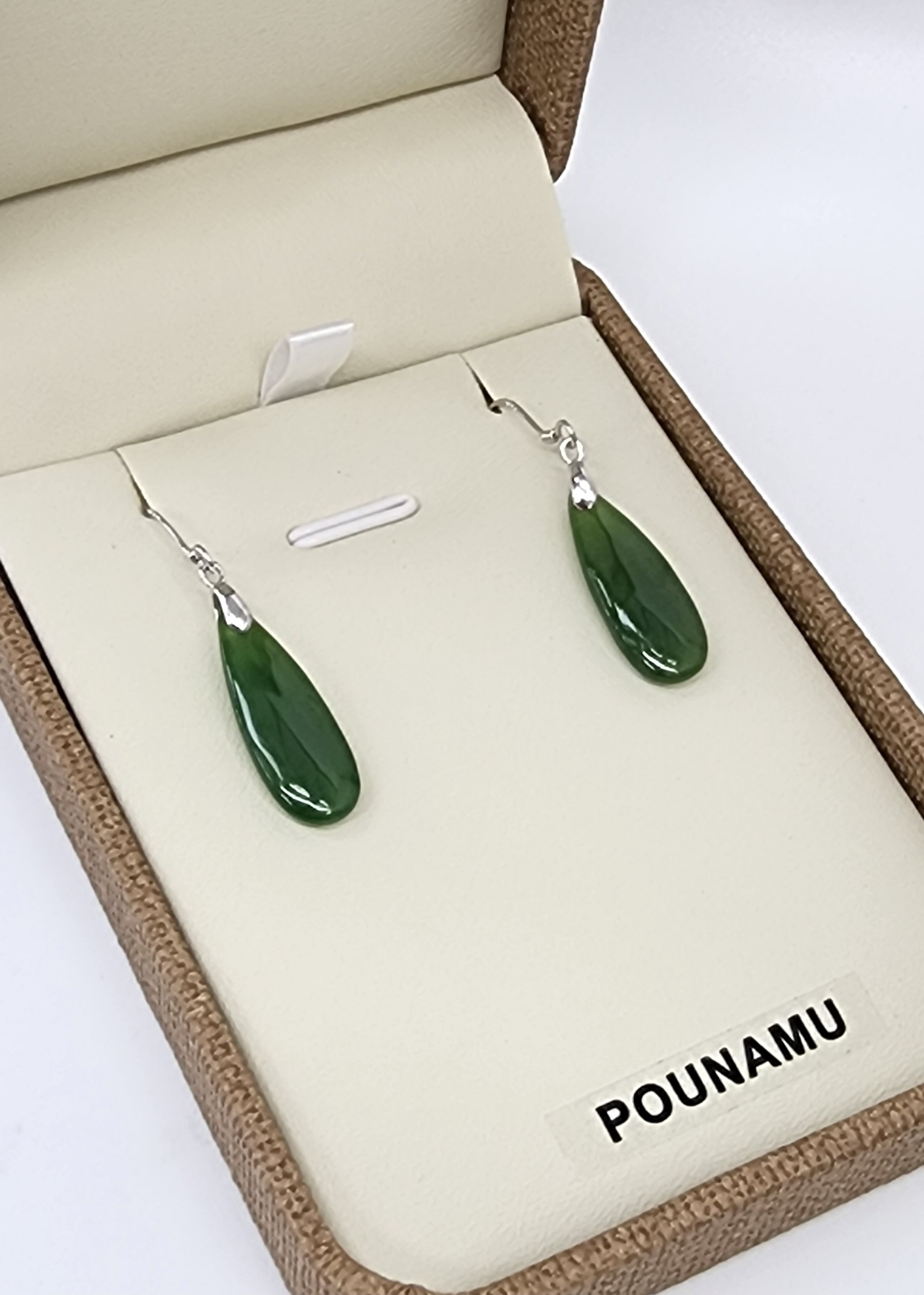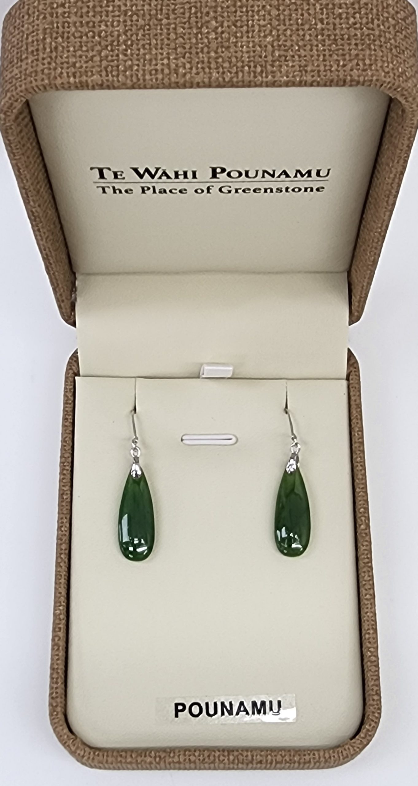NZ Greenstone Teardrop Earrings with Sterling Silver Hooks – CR-TDE