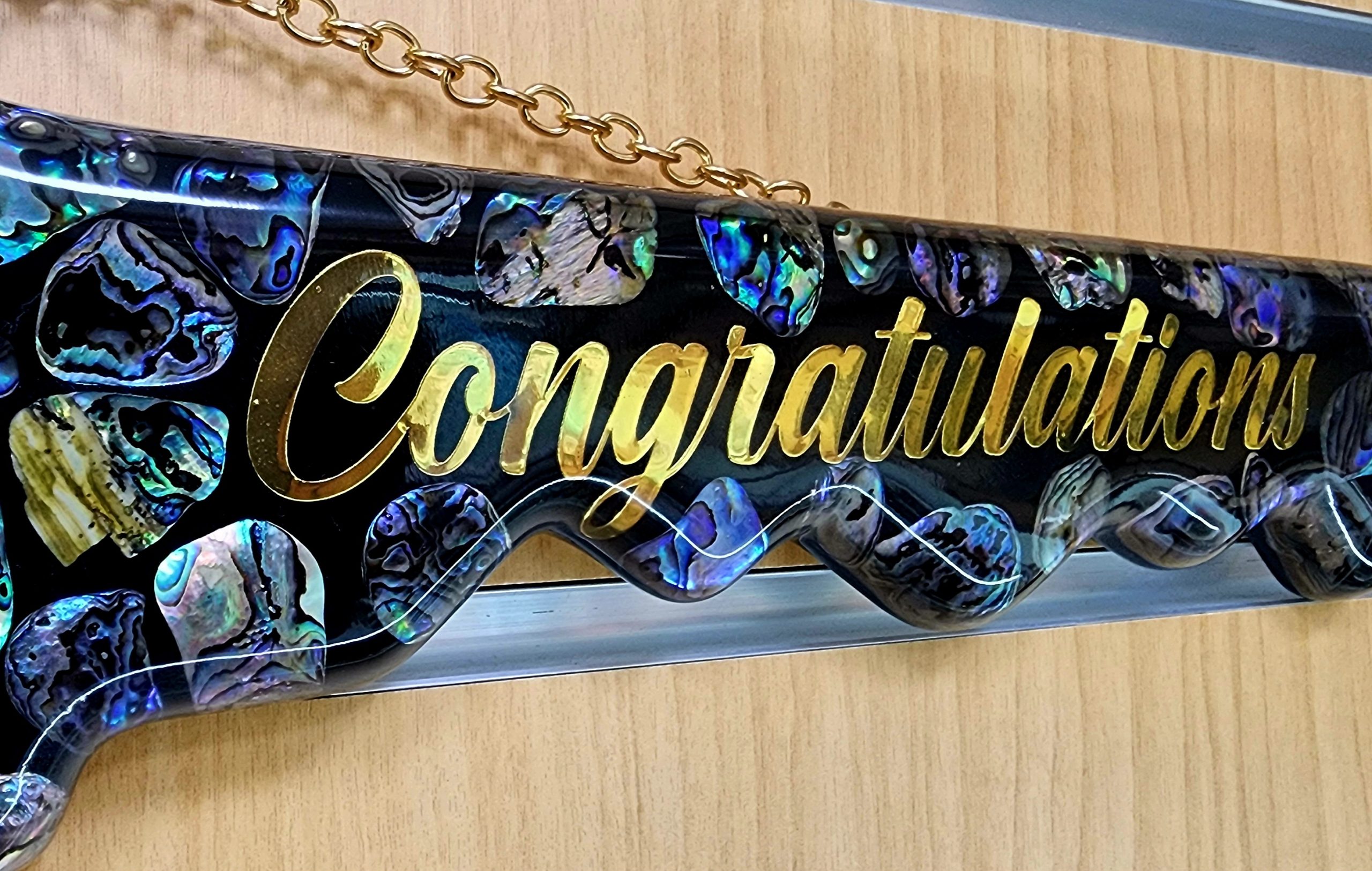 This beautifully crafted 21st celebration key is made using authentic New Zealand paua shell, sealed with a clear resin finish for lasting shine and protection. Measuring 450mm in length and 170mm in width, it features a photo slot on the left side sized at 67mm x 57mm—perfect for adding a personal touch.