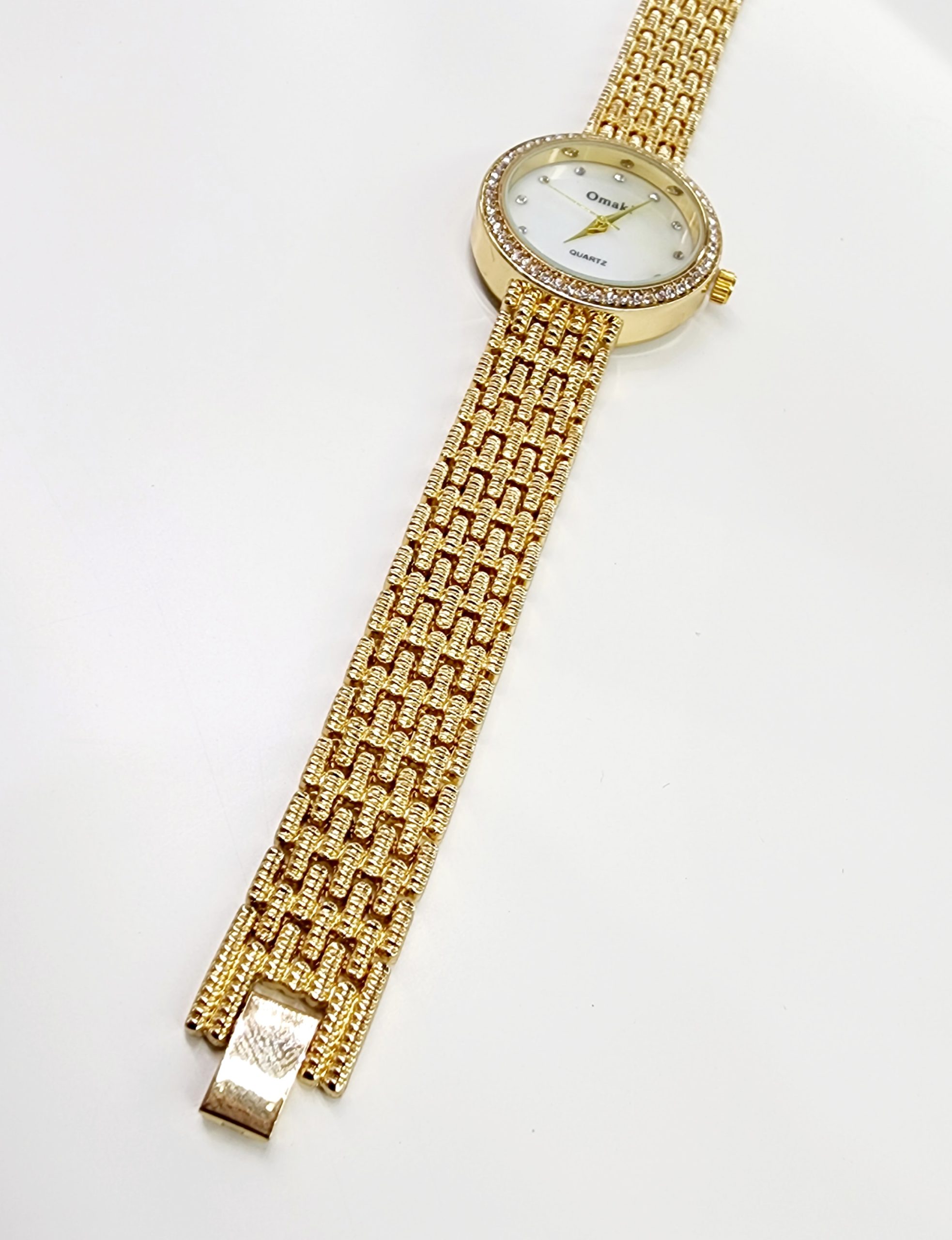 OMAKI Womens Gold Tone Dress Watch with Mother of Pearl Face Dial